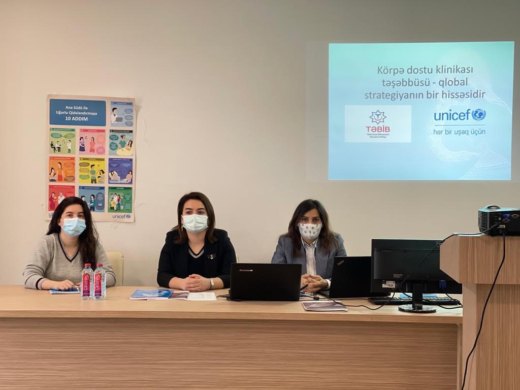 Bu məqsədlə TƏBİB -in Ana və uşaq sağlamlığının təşkili şöbəsi və Davamlı tibbi təhsil və tibbi təlimlər şöbəsinin BMT -nin Uşaq Fondu (UNİCEF) və Elmi Tədqiqat Pediatriya İnstitutu ilə birgə əməkdaşlığı çərçivəsində Abşeron Mərkəzi Rayon Xəstəxanasında 20 nəfərlik qrup üçün üç günlük “Ana südü ilə uğurlu qidalandırmaya doğru On Addım” adlı növbəti təlimlər keçirilib.
