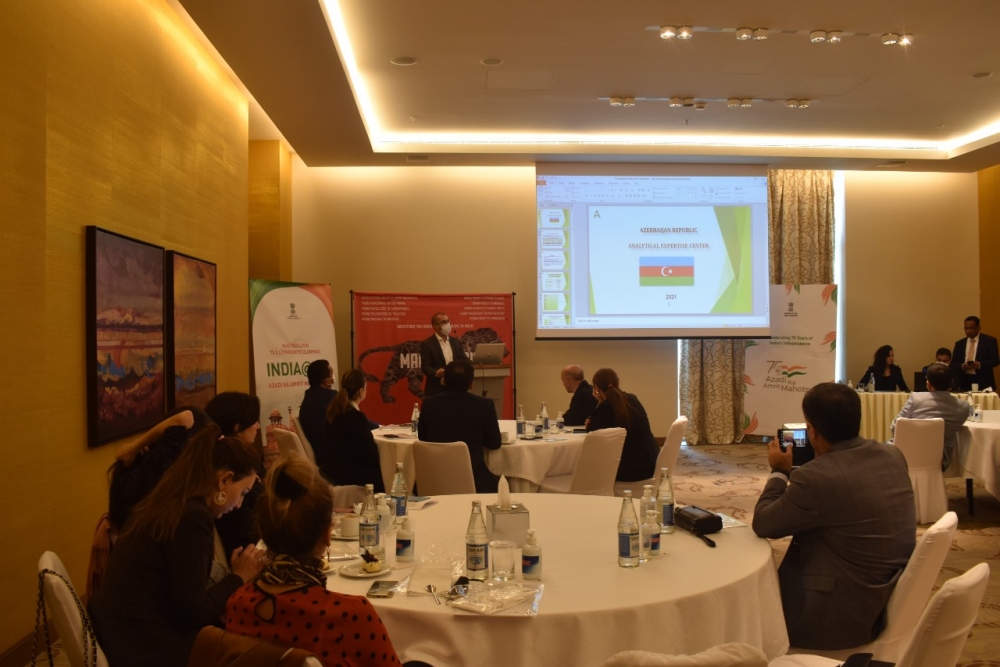 Hindistanın Azərbaycandakı səfiri Bavitlunq Vanlalvavna Hindistanın əczaçılıq sənayesinin qlobal əczaçılıq sektorunda hakim mövqedə olduğunu bildirib. İştirakçılara yeni əməkdaşlıq imkanları barədə məlumat verən səfir, Hindistanda hər gün 8 milyon RT-PCR testinin istehsal olunduğunu qeyd edib, bildirib ki, 200-ə yaxın Hindistanın əczaçılıq məhsulu Azərbaycanda artıq qeydiyyatdan keçib. Səfir Hindistanın sağlam iqtisadi artım nümayiş etdirdiyini və Beynəlxalq Valyuta Fondunun bu maliyyə ilində Hindistan iqtisadiyyatı üçün 9,5 faiz artım olacağını proqnozlaşdırdığını bildirib. Onun sözlərinə görə, bu iqtisadi artımın səbəbi Hindistan iqtisadiyyatında aparılan son islahatlar, o cümlədən yeni vergi qanunlarının təqdim olunması, İstehsal ilə əlaqəli Təşviq Proqramları, İnkişaf üzrə Maliyyə İnstitutunun qurulması, əmək qanunlarının qəbul olunması, aktivlərin monetizasiyası proqramının işə salınması, telekommunikasiya sektorunda investisiya siyasətinin liberallaşdırılması və s. ola bilər.