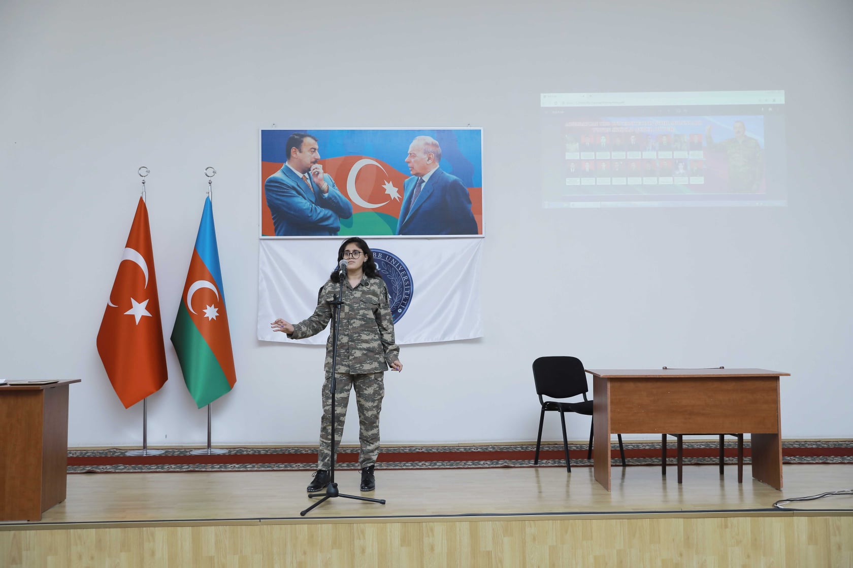 Aztibb.az xəbər verir ki, əvvəlcə universitetin Təlim-tərbiyə işləri üzrə prorektoru, dosent Zülfüqar Musabəyov çıxış edərək 44 günlük Vətən müharibəsində qazanılan şanlı Qələbədən, Müzəffər Ali Baş Komandan, Prezident İlham Əliyevin uğurlu daxili və xarici siyasətindən, Azərbaycan Ordusunun və əsgərinin qəhrəmanlığından söz açıb.