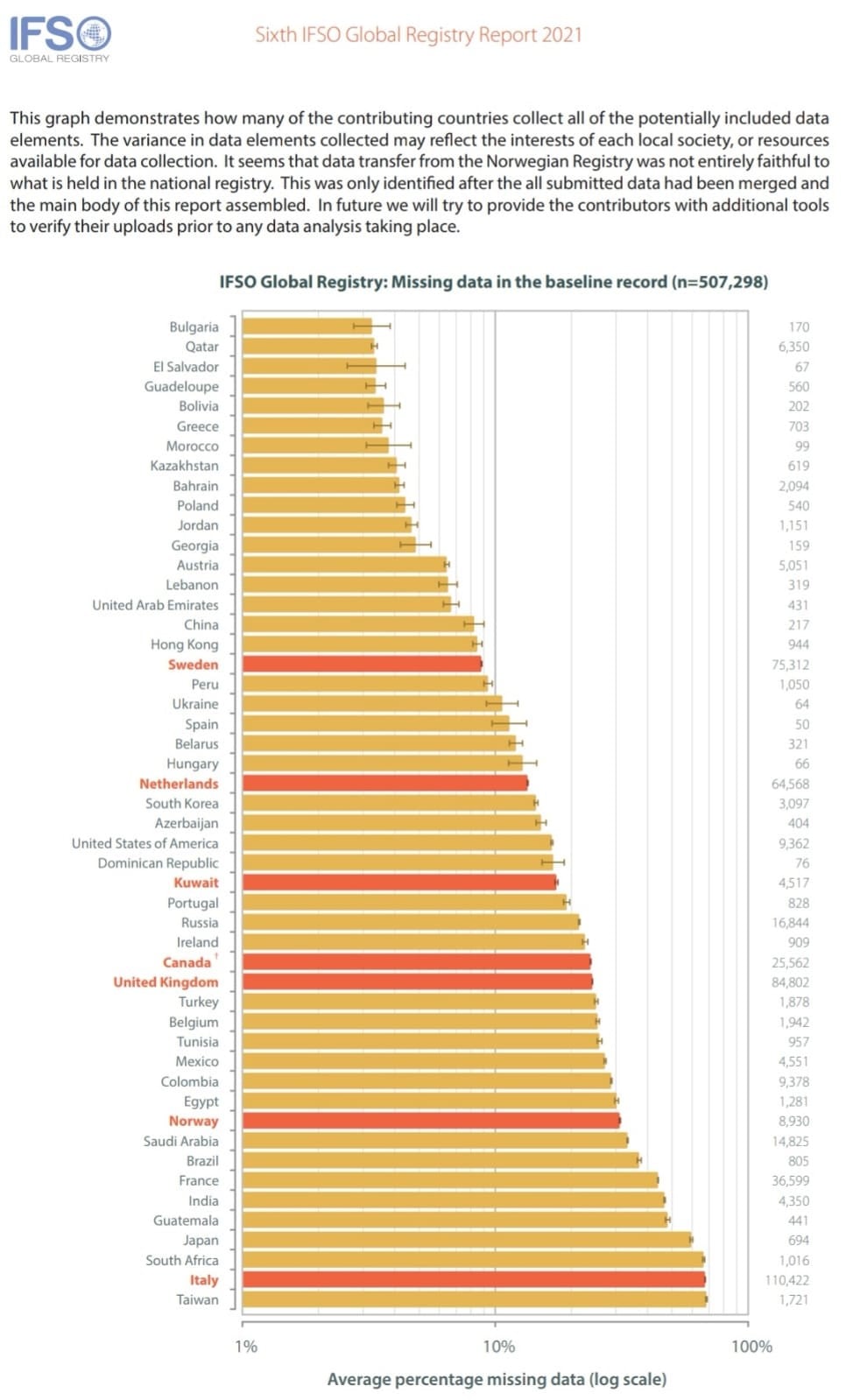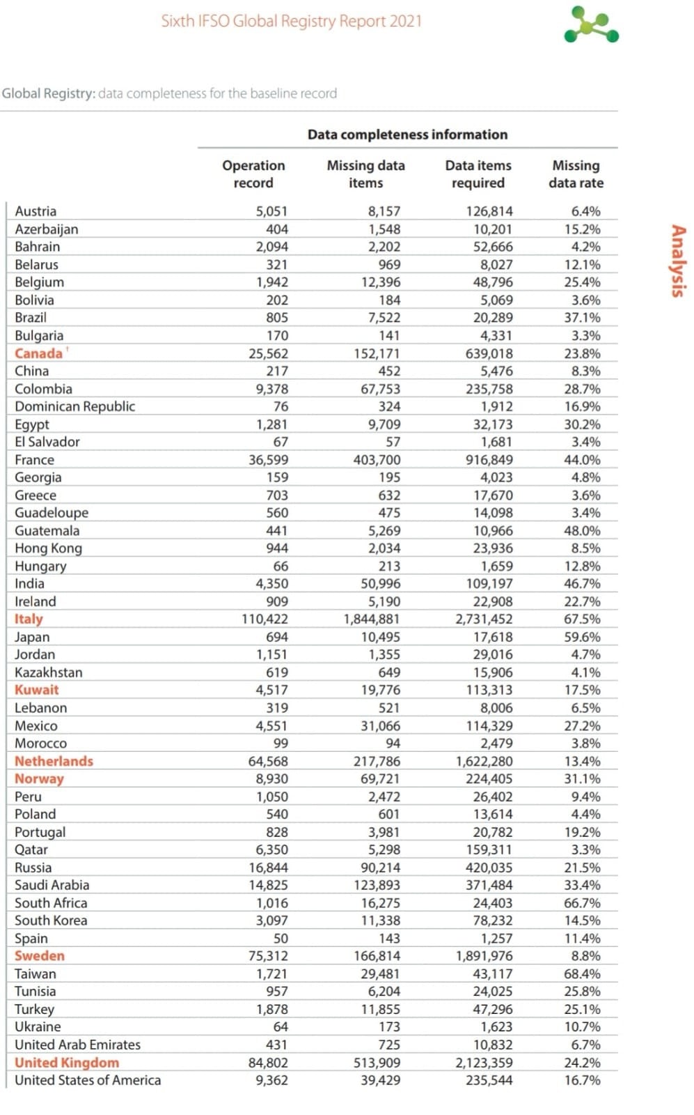 Qeyd edək ki, bu hesabatda 50 ölkədə aparılan 507 mindən çox əməliyyat haqqında məlumatlar əks olunub. Cari məlumat bazasında məlumatların təqdim edildiyi hər 10 ölkə region reyestrinin hüquqları ilə təmsil olunur. Reyestrdə iştirak edənlərin orta BKİ göstəricisi Asiya-Sakit Okean regionunda 38,9 kq m2 arasında dəyişib. Reyestrdə iştirak edənlərin orta yaşı Yaxın Şərqdə - Şimalda 33,1 yaş, Şimali Amerikada 44,3 yaş arasında dəyişib. Əməliyyat olunan kişilər qadınlardan daha böyük yaşda olublar.