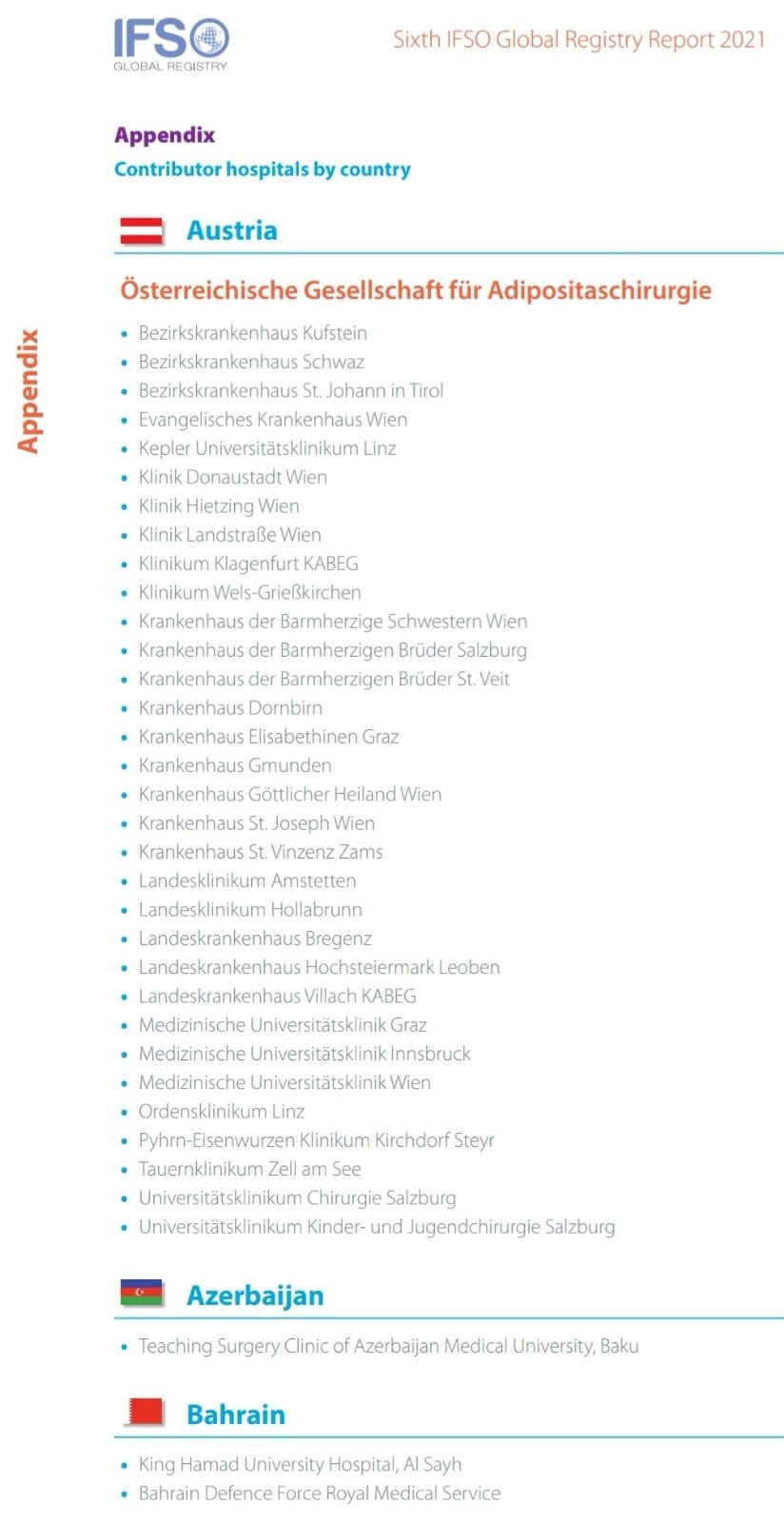 Bu il ilk dəfə olaraq Azərbaycan Tibb Universitetinin (ATU) adı İFSO beynəlxalq təşkilatının Qlobal reyestrinə daxil olunub. İllik hesabat şəklində dərc olunan bu reyestrdə inkişaf etmiş dövlətlərdə bariatrik cərrahiyyə sahəsində aparılan əməliyyatların, qeydə alınan və müalicə edilən xəstəliklərin dəqiq sayı və dürüstlük əmsalı əks olunur.