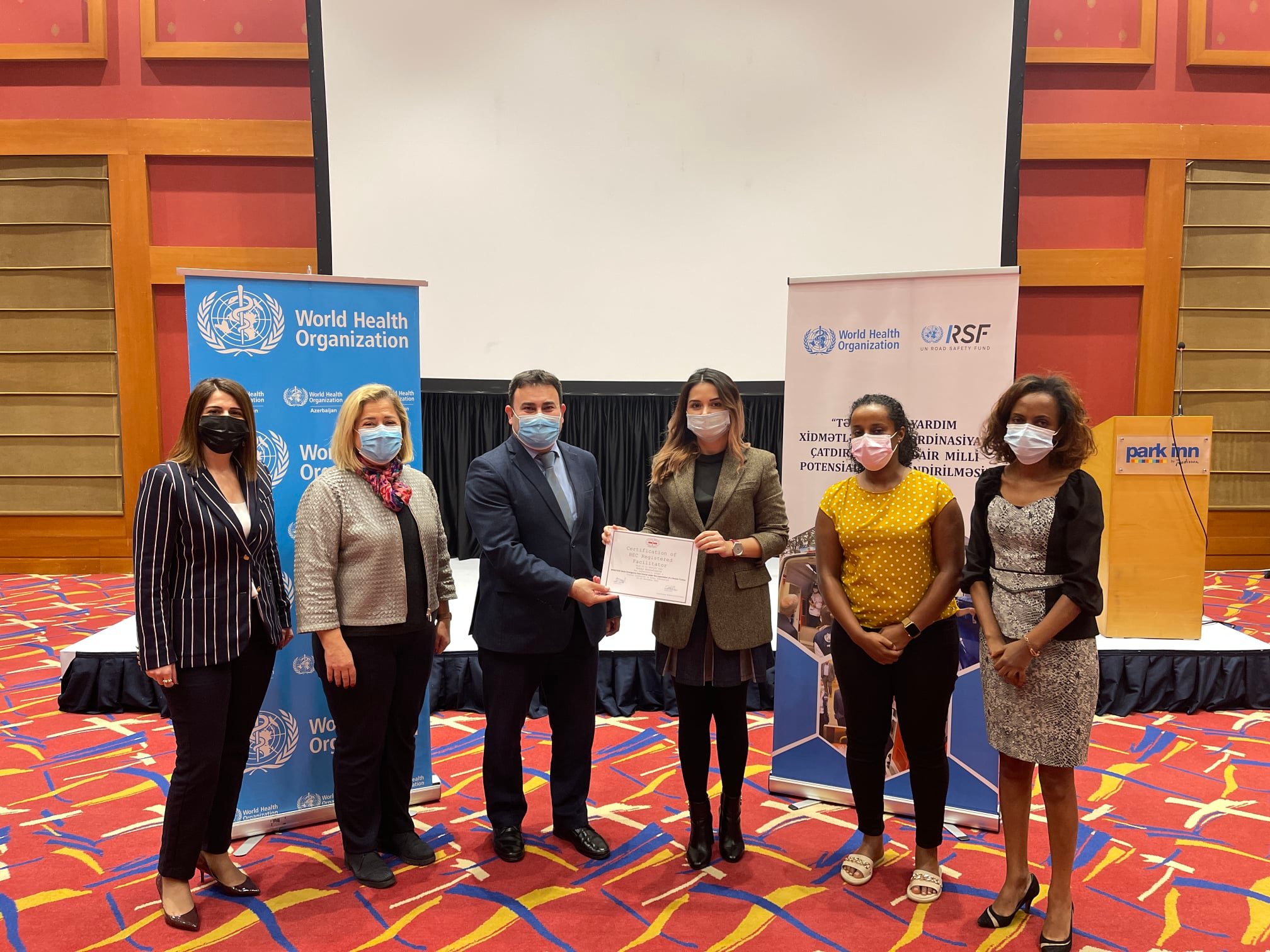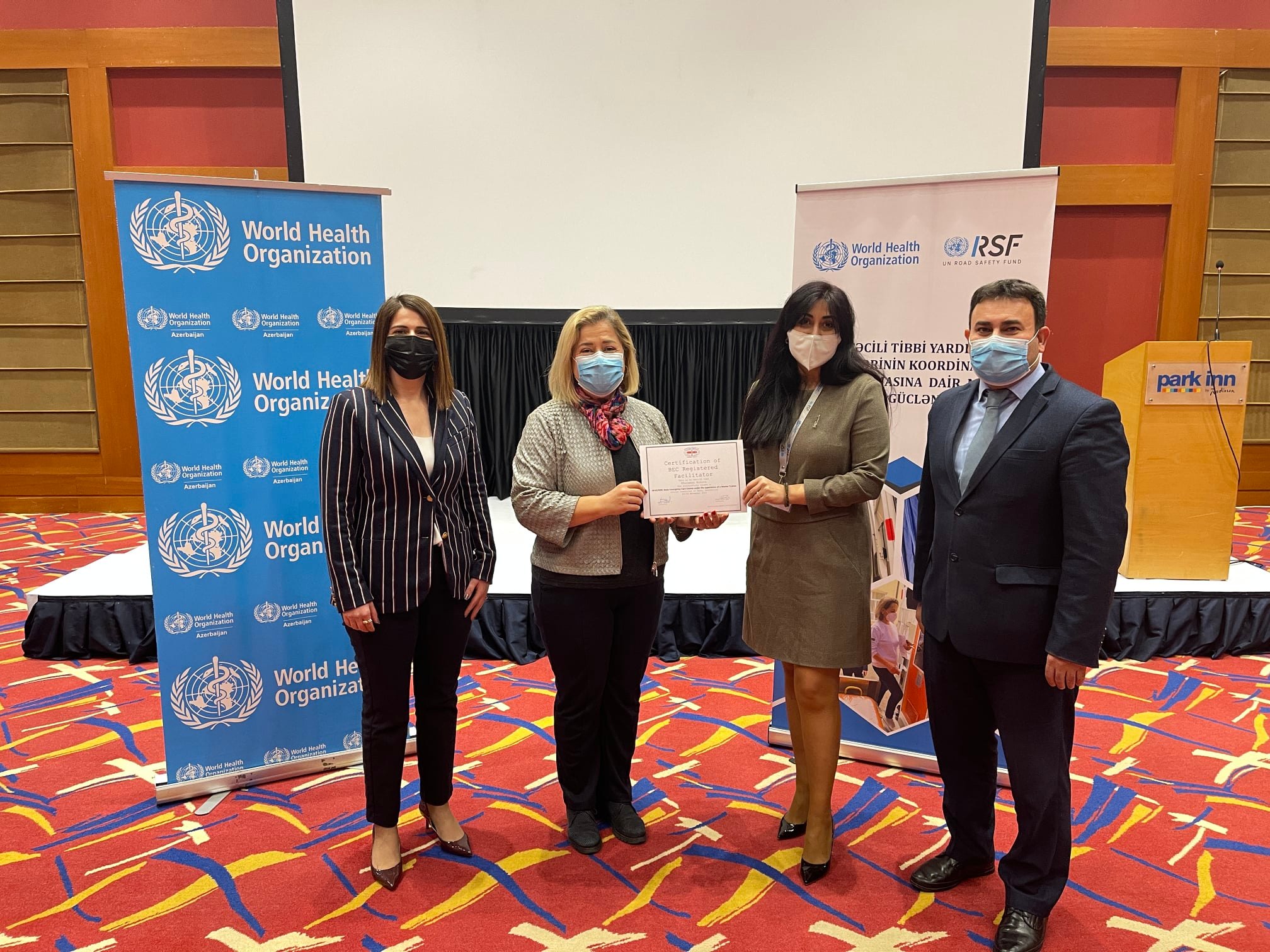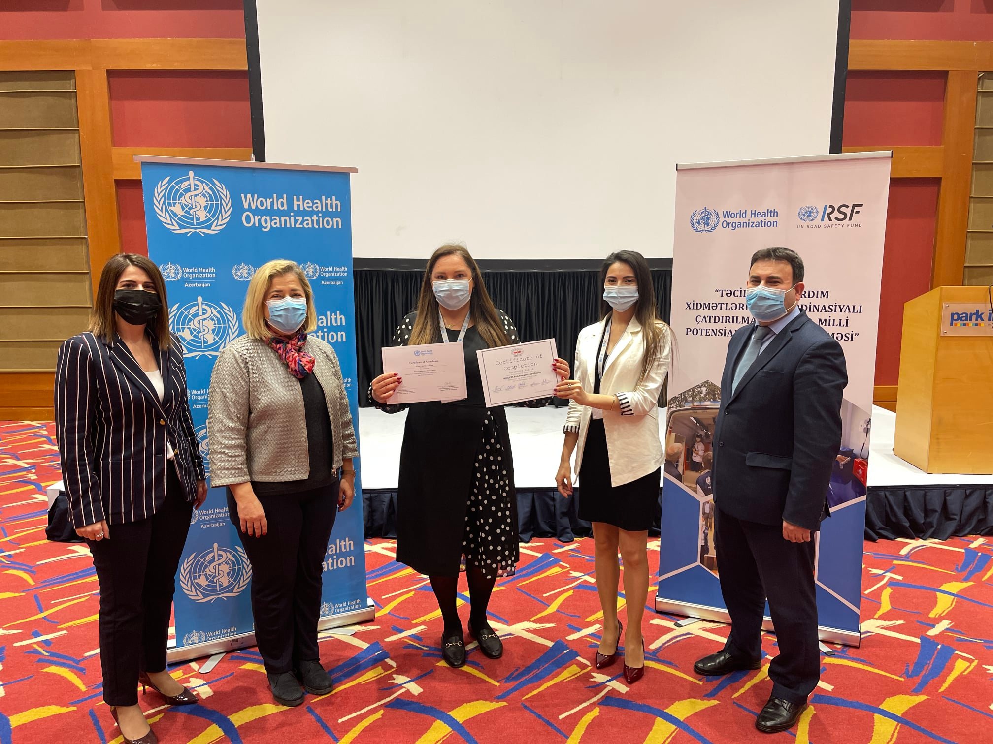 Kursu müvəffəqiyyətlə başa vurmuş iştirakçılar ÜST-ün Azərbaycandakı nümayəndəsi Dr. Hande Harmancı, TƏBİB-in Tibbi xidmətlər departamentinin rəhbəri Firəngiz Əliyeva və Davamlı tibbi təhsil və tibbi təlimlər şöbəsinin müdiri Emil İskəndərov tərəfindən sertifikatlarla təltif olunub.