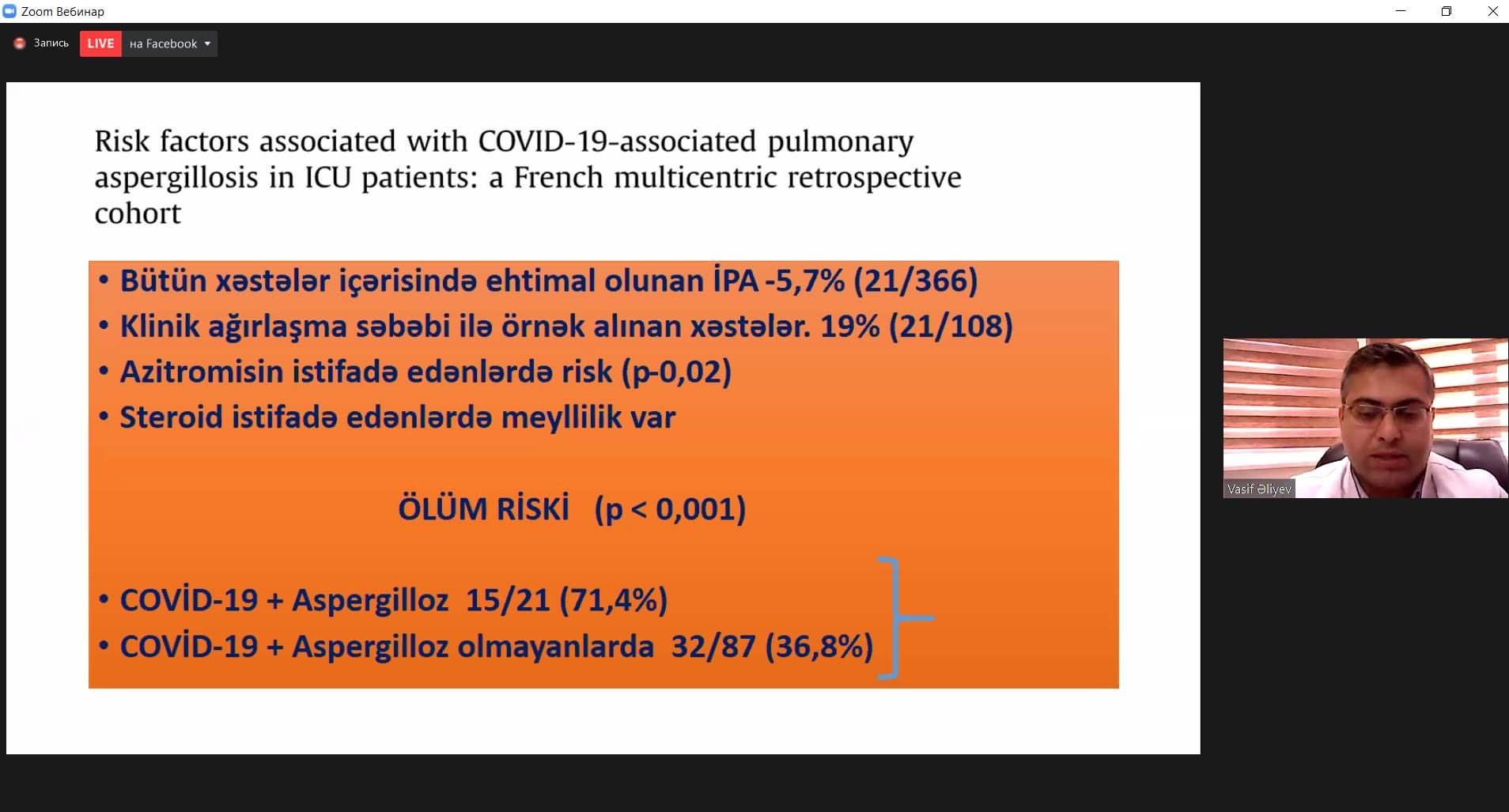 Konfransın elmi hissəsində Mərkəzi Gömrük Hospitalının rəis müavini Bəxtiyar Musayevin moderatorluğu ilə davam edən elmi hissədə Mərkəzi Gömrük Hospitalının infeksionisti Mədinə Abdullayeva “Xəstəxanadaxili infeksiyalar: ümumi yanaşma və diqqət edilməli vacib məqamlar”, TƏBİB-in infeksion xəstəliklər üzrə işçi qrupunun həkim-infeksionisti Nəzrin Mustafayeva “COVID-19 və xəstəxanadaxili rezistent bakterial infeksiyalar”, TƏBİB-in infeksion xəstəliklər üzrə işçi qrupunun rəhbəri Vasif Əliyev “COVID-19 və xəstəxanadaxili funqal infeksiyalar”, Mərkəzi Gömrük Hospitalının həkim-metodisti Səttar Yaqubov “COVID-19 xəstələrinin müalicəsi ilə məşğul olan tibb müəssisələrində infeksiyaya nəzarətin əsasları - yerli təcrübə”, Florence Nightingale Xəstəxanalar Qrupunun həkim-infeksionisti Feride Gökçe Demir “COVID-19 pandemiyası zamanı xəstəxanadaxili infeksiyalarla mübarizədə Türkiyə təcrübəsi” və Mərkəzi Gömrük Hospitalının anestezioloq-reanimatoloqu Mehdi Əliyev “COVID-19 və septik şok” mövzularında məruzələrlə çıxış ediblər.