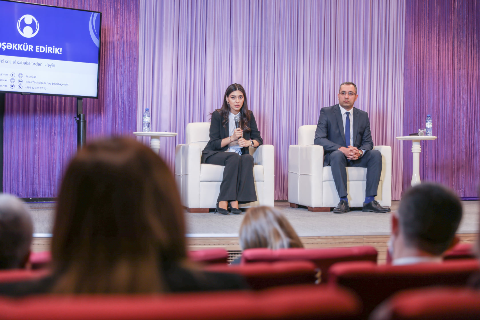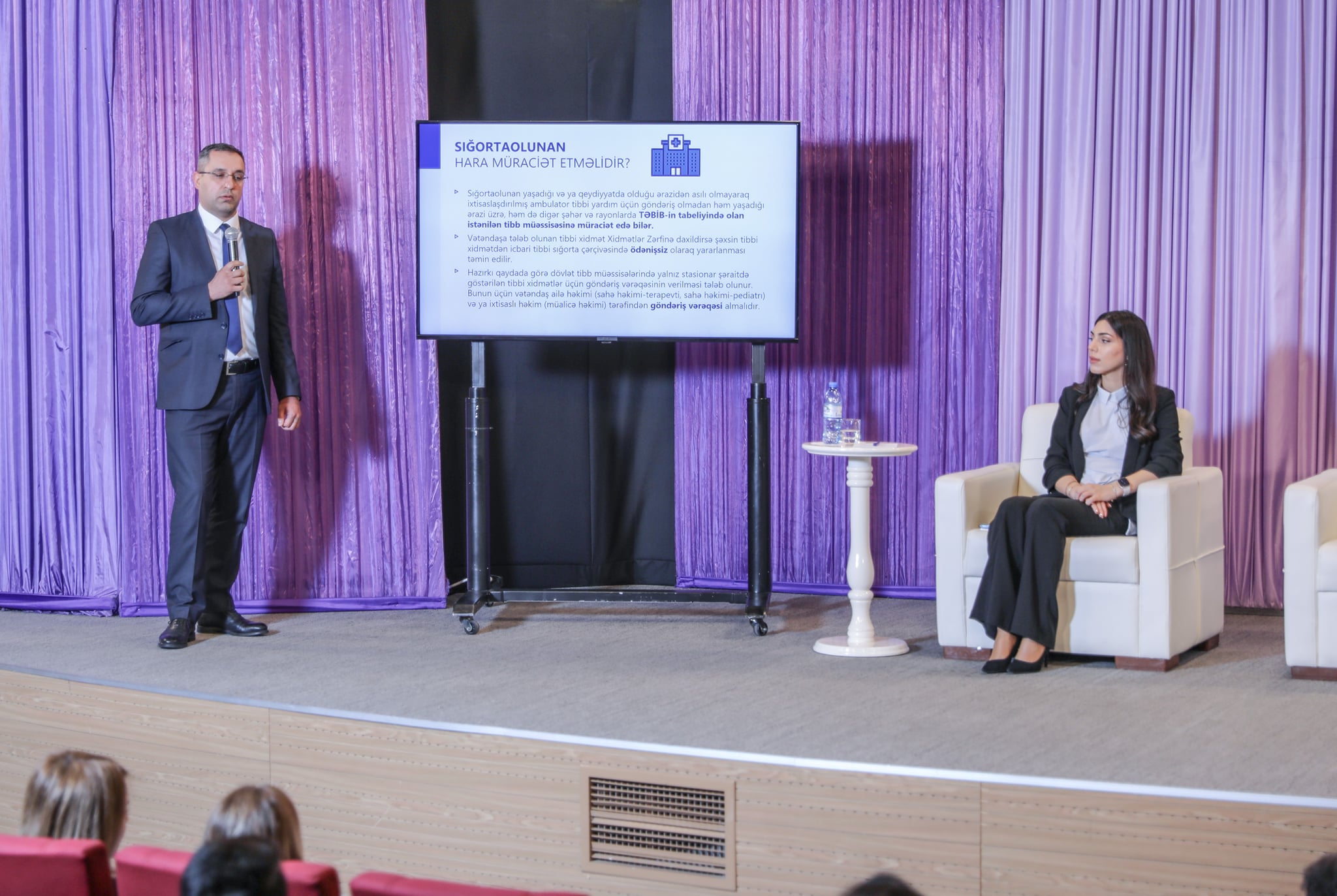 Aztibb.az xəbər verir ki, İcbari Tibbi Sığorta üzrə Dövlət Agentliyinin Göndərişlər şöbəsinin müdiri Arif Əkbərov və Marketinq və tədbirlər şöbəsinin rəhbəri Pərvin Baxşəliyeva iştirakçıların suallarını cavablandırıblar.