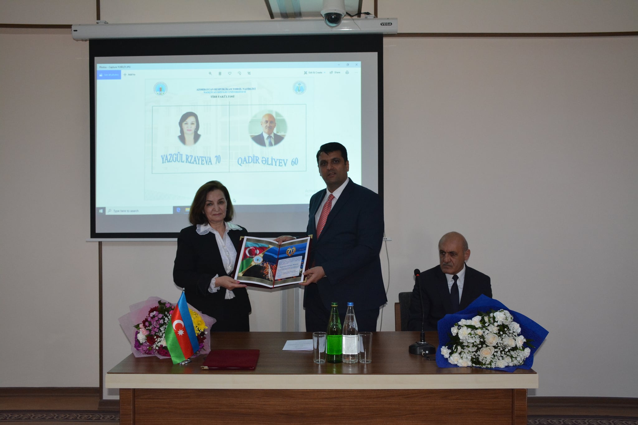 Naxcıvan Dövlət Universitetinin Tibb fakültəsində Naxçıvan Muxtar Respublikasının Əməkdar həkimi, baş müəllim Yazgül Rzayevanın 70, müəllim və həkim-laborant Qadir Əliyevin isə 60 illik yubileyləri qeyd olunub.