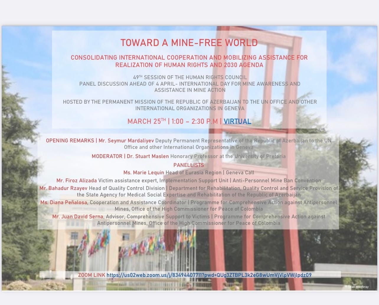 Qeyd edək ki, Cenevrədə (İsveçrə) keçirilən tədbir 4 aprel - Beynəlxalq Mina Xəbərdarlığı və Mina Fəaliyyətinə Yardım Günü ərəfəsində minaların insan hüquqlarının qorunmasına təsiri mövzusuna həsr edilib.