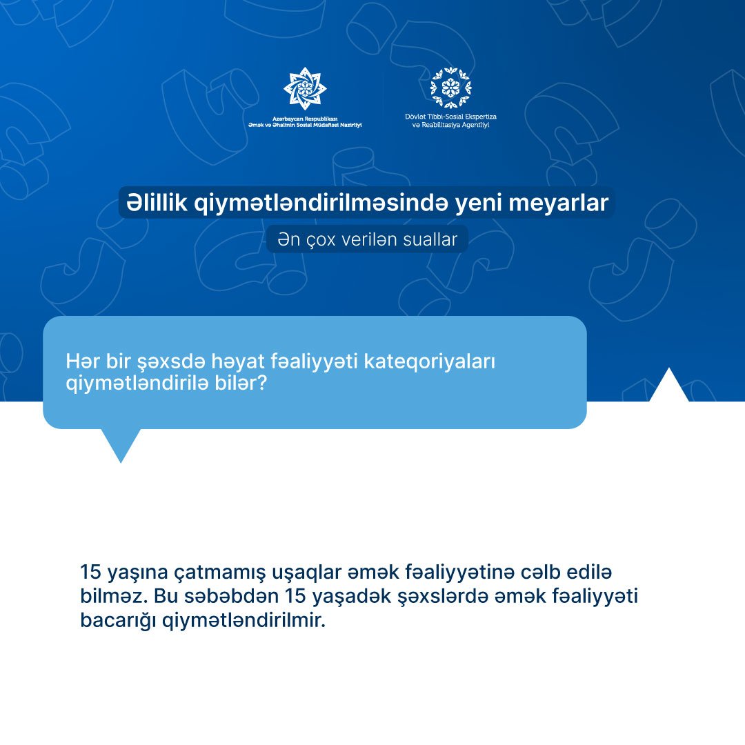 15 yaşına çatmamış uşaqlar əmək fəaliyyətinə cəlb edilmədiyi üçün onlarda əmək fəaliyyəti bacarığı qiymətləndirilməyəcək.