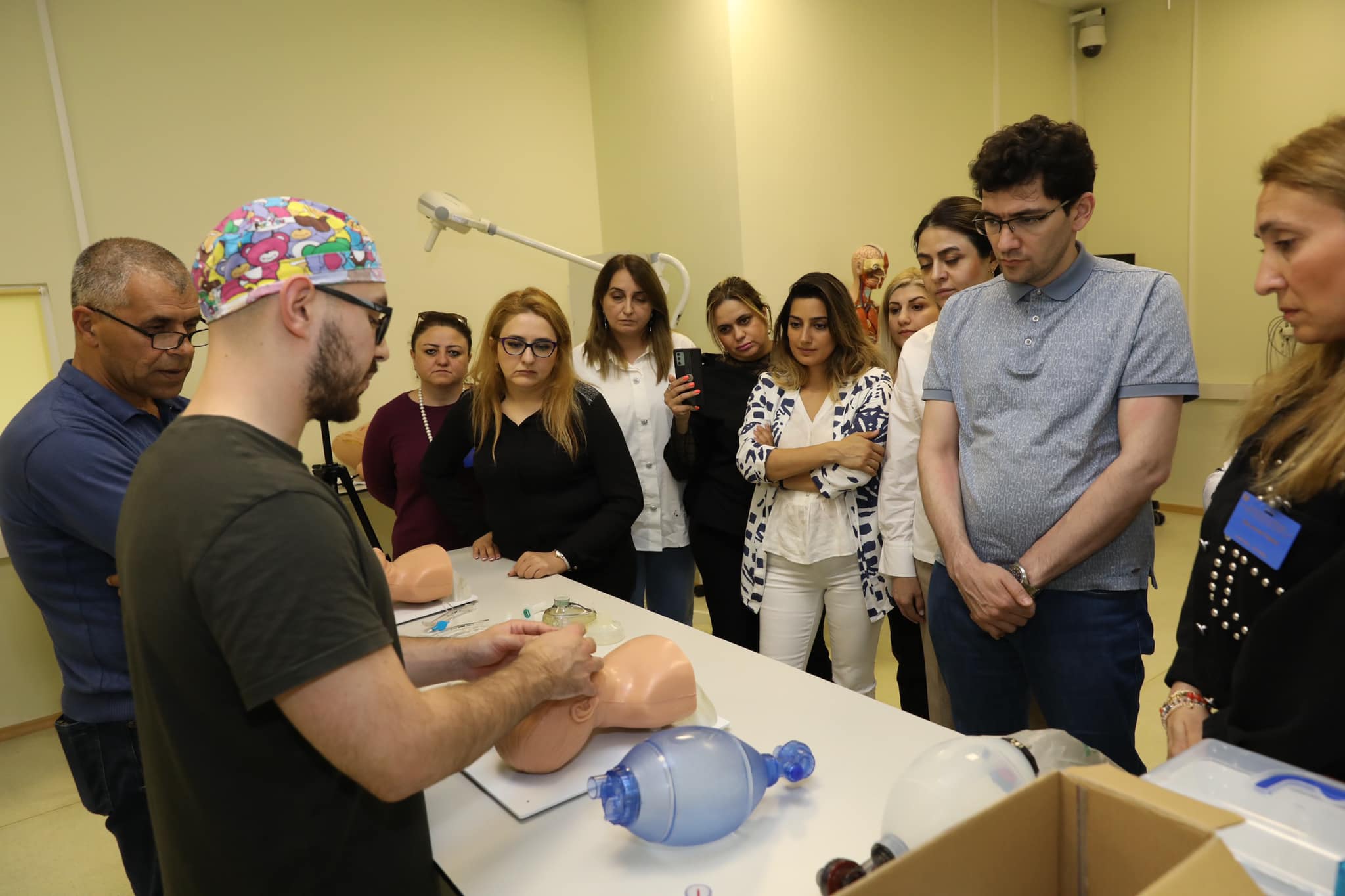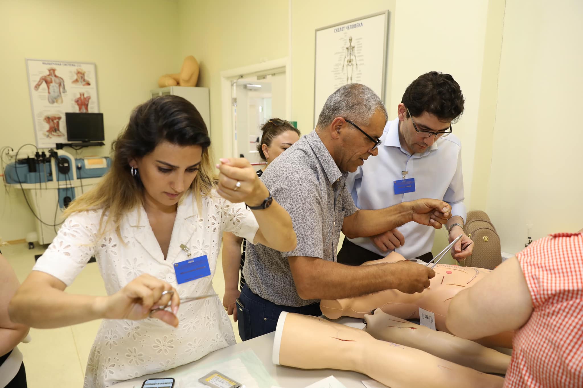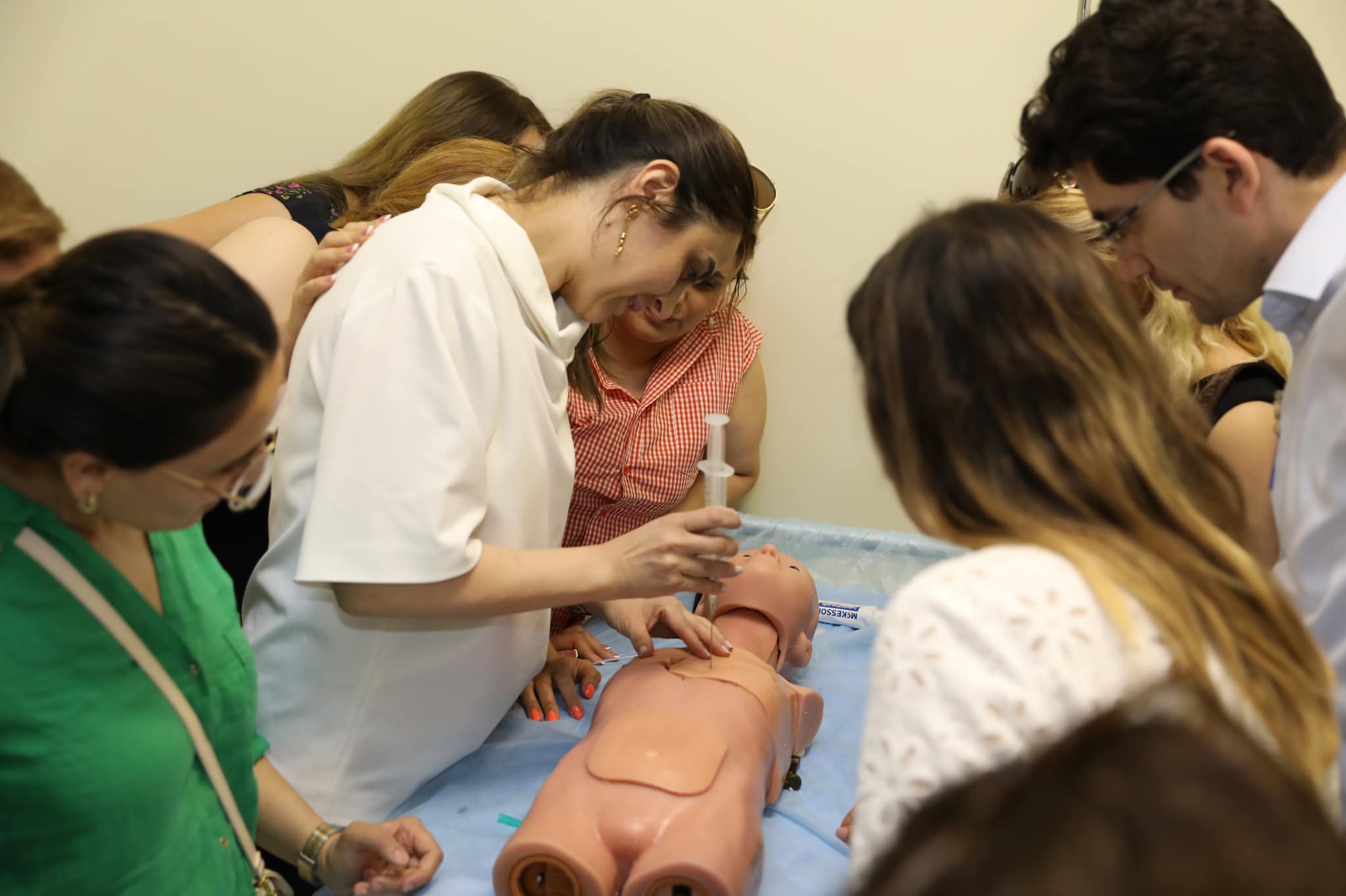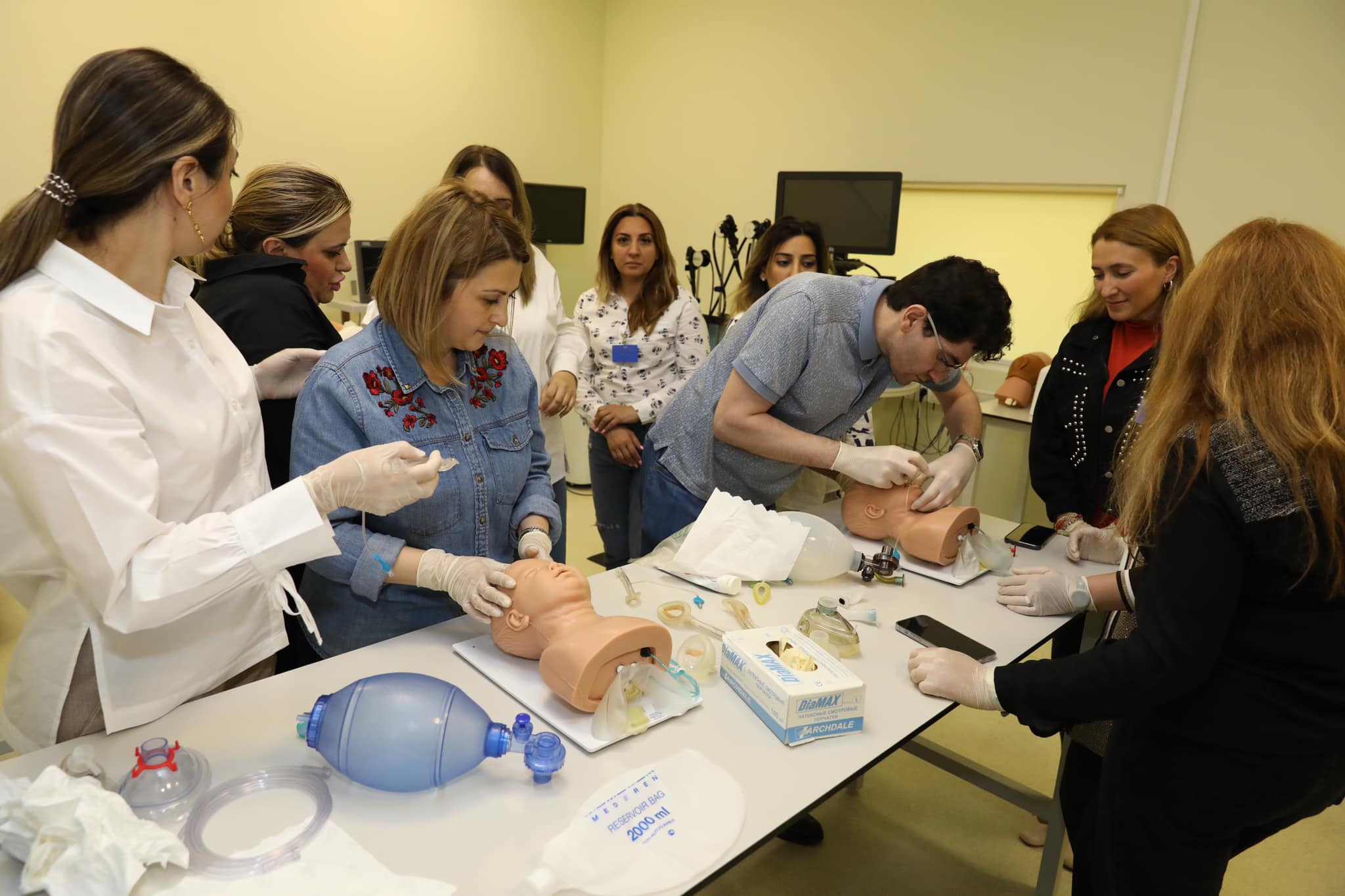 Təxirəsalınmaz vəziyyətlərin düzgün idarə olunması, vaxtında düzgün tibbi yardımın göstərilməsi mövzularında 15 praktiki təlim (defibrillyatorun tətbiqi, lumbal punksiya, uşaqlarda tənəffüs yollarının keçiriciliyinin təmin edilməsi, intubasiya, yaraların birincili cərrahi işlənilməsi, plevral və perikardial punksiya, ürək ritminin pozulması zamanı ilk yardım, şoklar və ürək dayanması zamanı ilkin tibbi yardımın göstərilməsi, konikotomiya, uşaqlarda venoz və intraosseoz punksiyanın texnikası) keçirilib və simulyasion mərkəzin manipulyasiya və cərrahi otaqlarında yerləşən xüsusi mulyajlar üzərində praktikada tətbiq edilib. Simulyasiya mərkəzində texniki olaraq uşaqlarda ağır klinik hallar canlandırılıb və komanda şəklində tapşırıqlar icra olunub.