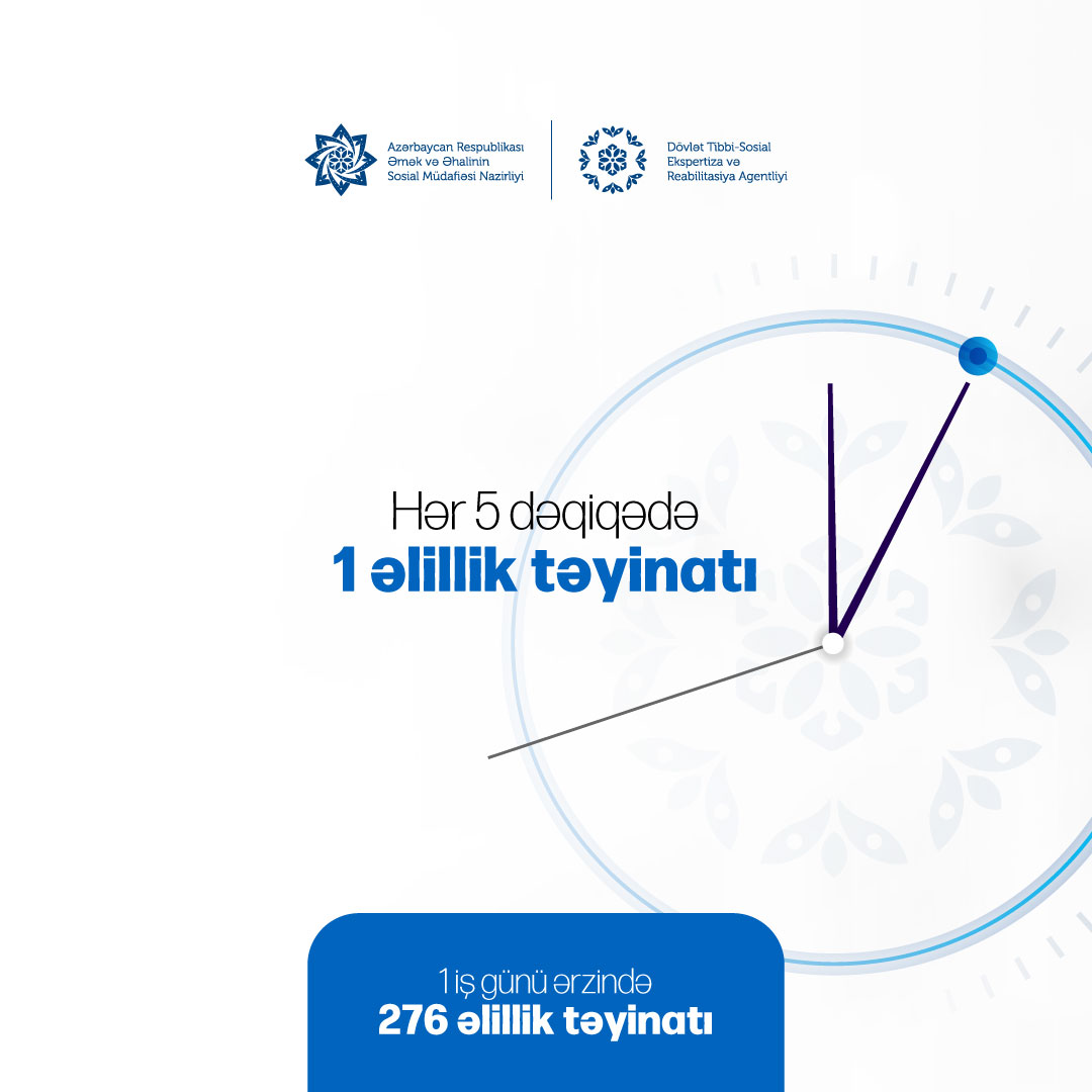 Agentlik tərəfindən hər beş dəqiqədə 1 şəxsə əlillik təyinatı verilib.