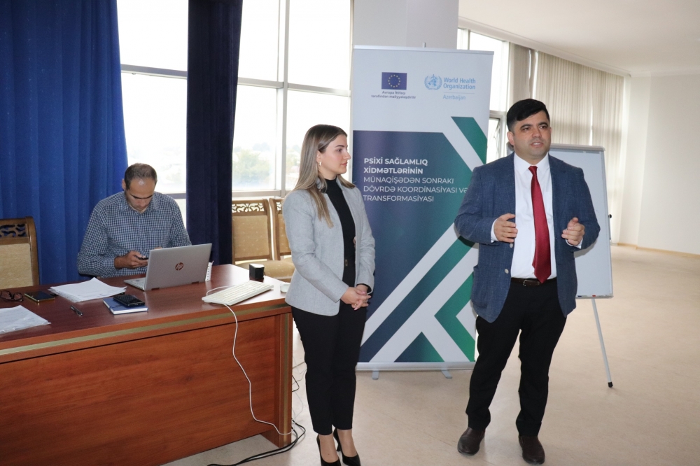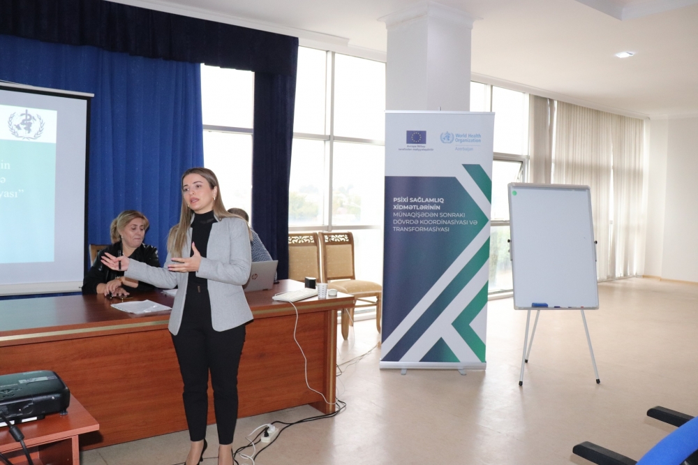 Avropa İttifaqının (Aİ) maliyyə dəstəyi ilə həyata keçirilən Psixi sağlamlıq xidmətlərinin münaqişədən sonrakı dövrdə koordinasiyası və transformasiyası layihəsi çərçivəsində Ümumdünya Səhiyyə Təşkilatının (ÜST) ölkə ofisi, Səhiyyə Nazirliyi və Tibbi Ərazi Bölmələrini İdarəetmə Birliyinin (TƏBİB) birgə əməkdaşlığı ilə Bərdə Rayon Mərkəzi Xəstəxanasında ilkin səhiyyə xidməti göstərən həkimlər üçün oktyabrın 26-dan 28-nə kimi ilk mhGAP (psixi sağlamlıq sahəsində boşluqları aradan götürmək üçün tədbirlər planı) təlimi təşkil edilib.