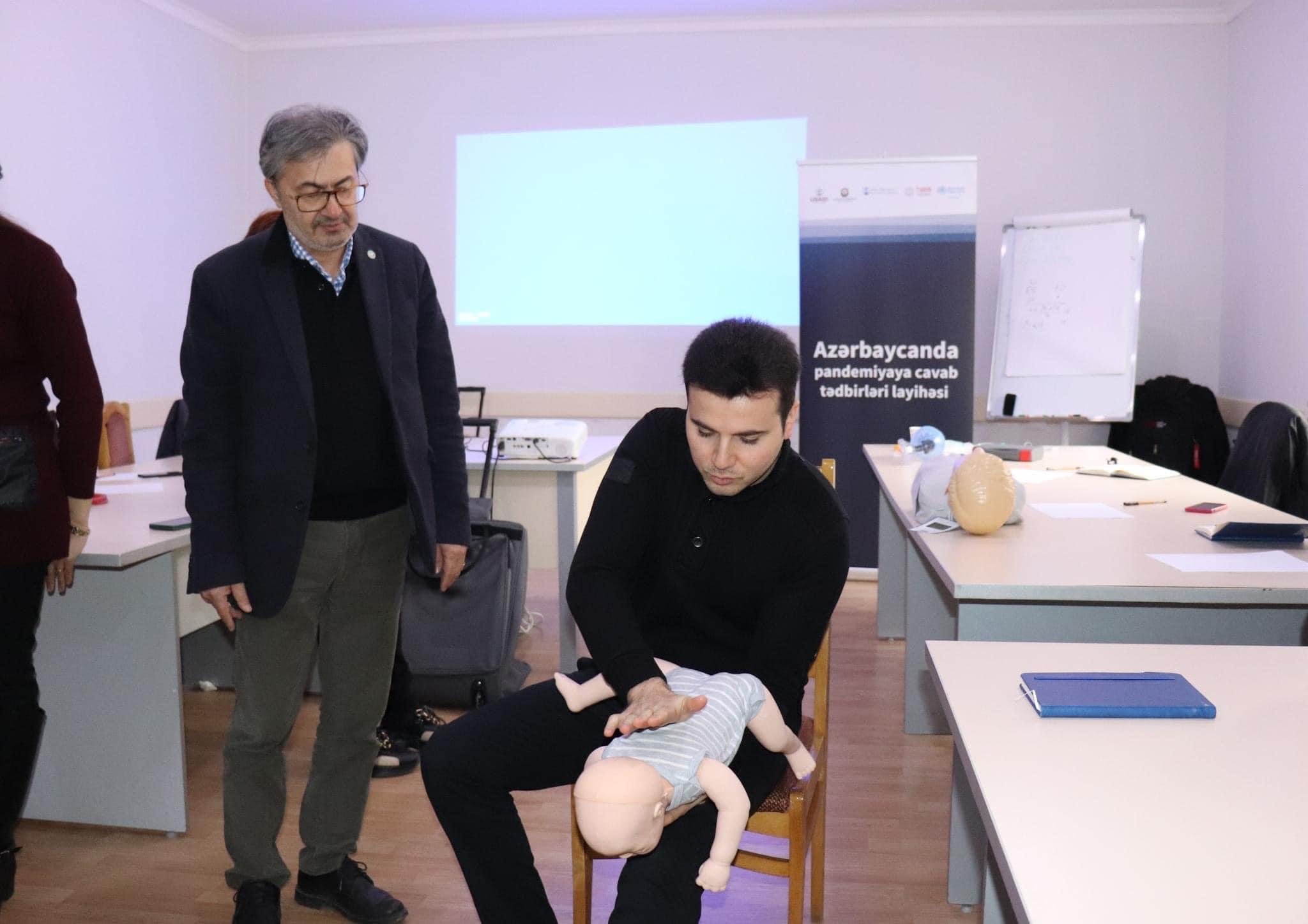 ÜST-nin Azərbaycan Nümayəndəliyinin təşkil etdiyi təlim "Azərbaycanda pandemiyaya cavab tədbirləri" layihəsi çərçivəsində həyata keçirilib. Layihənin əsas fəaliyyət istiqamətlərindən biri ölkənin təcili tibbi yardım sisteminin infrastrukturunun və insan resurslarının gücləndirilməsinə dəstək olmaqdır. Layihə çərçivəsində 2022-ci ilin aprelindən bu günədək 270 tibb işçisi təcili tibbi yardım sahəsində təlimlərə qatılıb.