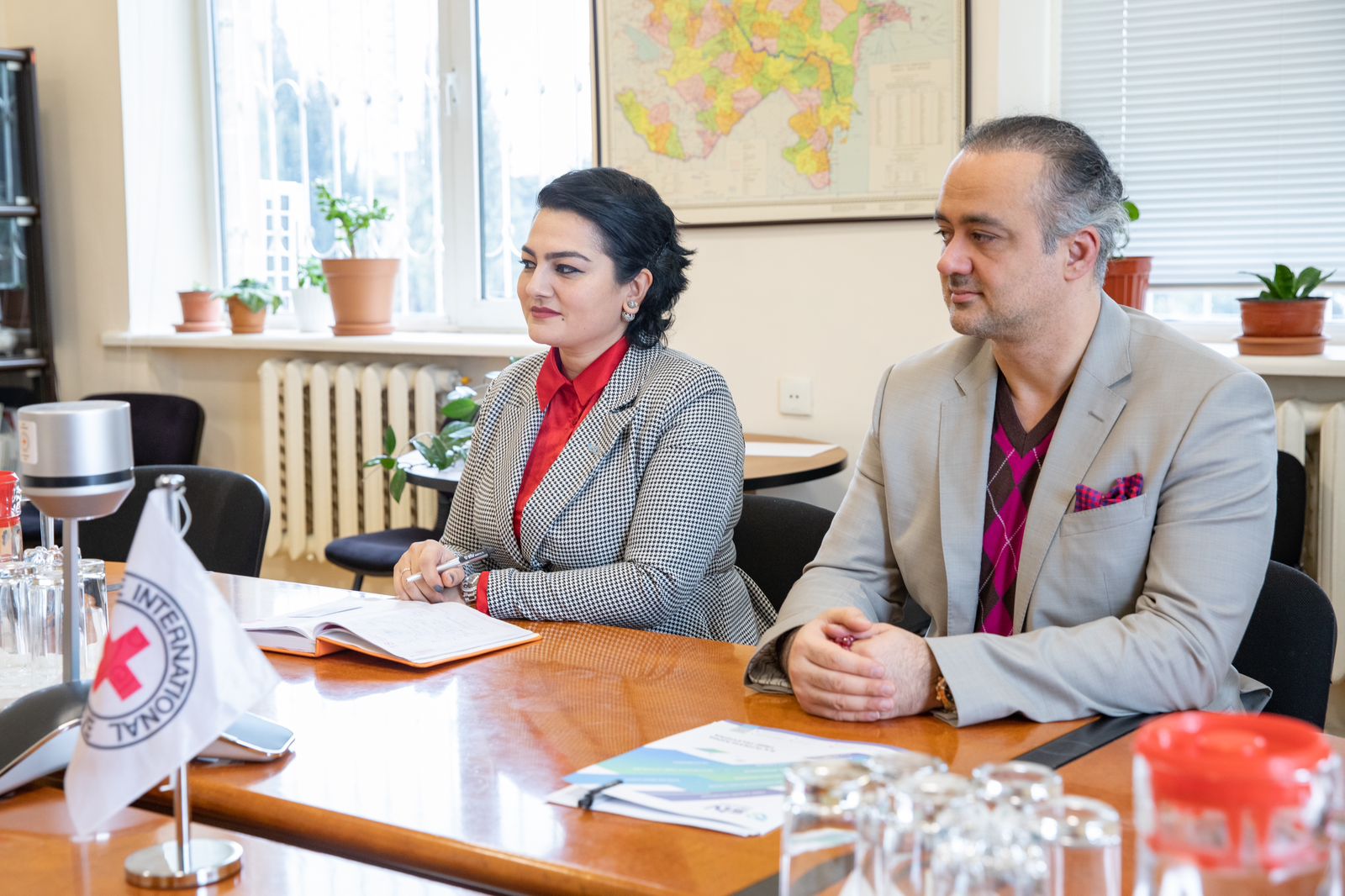 Görüşdə Beynəlxalq Qızıl Xaç Komitəsinin Azərbaycan nümayəndəliyinin rəhbərinin əməliyyatlar üzrə müavini, səhiyyə üzrə koordinator Apollo Kinyokie Barasa, təşkilatın digər nümayənləri və Səhiyyə TV-nin təsisçisi və direktoru Azər Xudiyev, Səhiyyə TV-nin Beynəlxalq məsələlər üzrə şöbəsinin müdiri Leyda Kazımova iştirak ediblər.