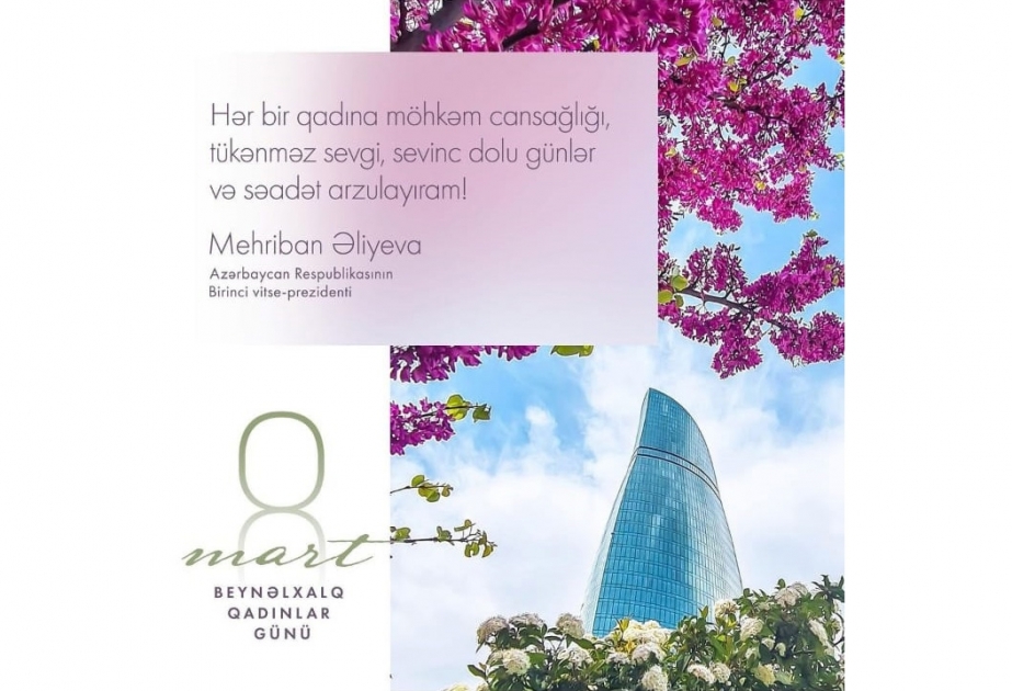 Azərbaycan Respublikasının Birinci vitse-prezidenti Mehriban Əliyeva 8 Mart – Beynəlxalq Qadınlar Günü münasibətilə instaqram səhifəsində paylaşım edib.