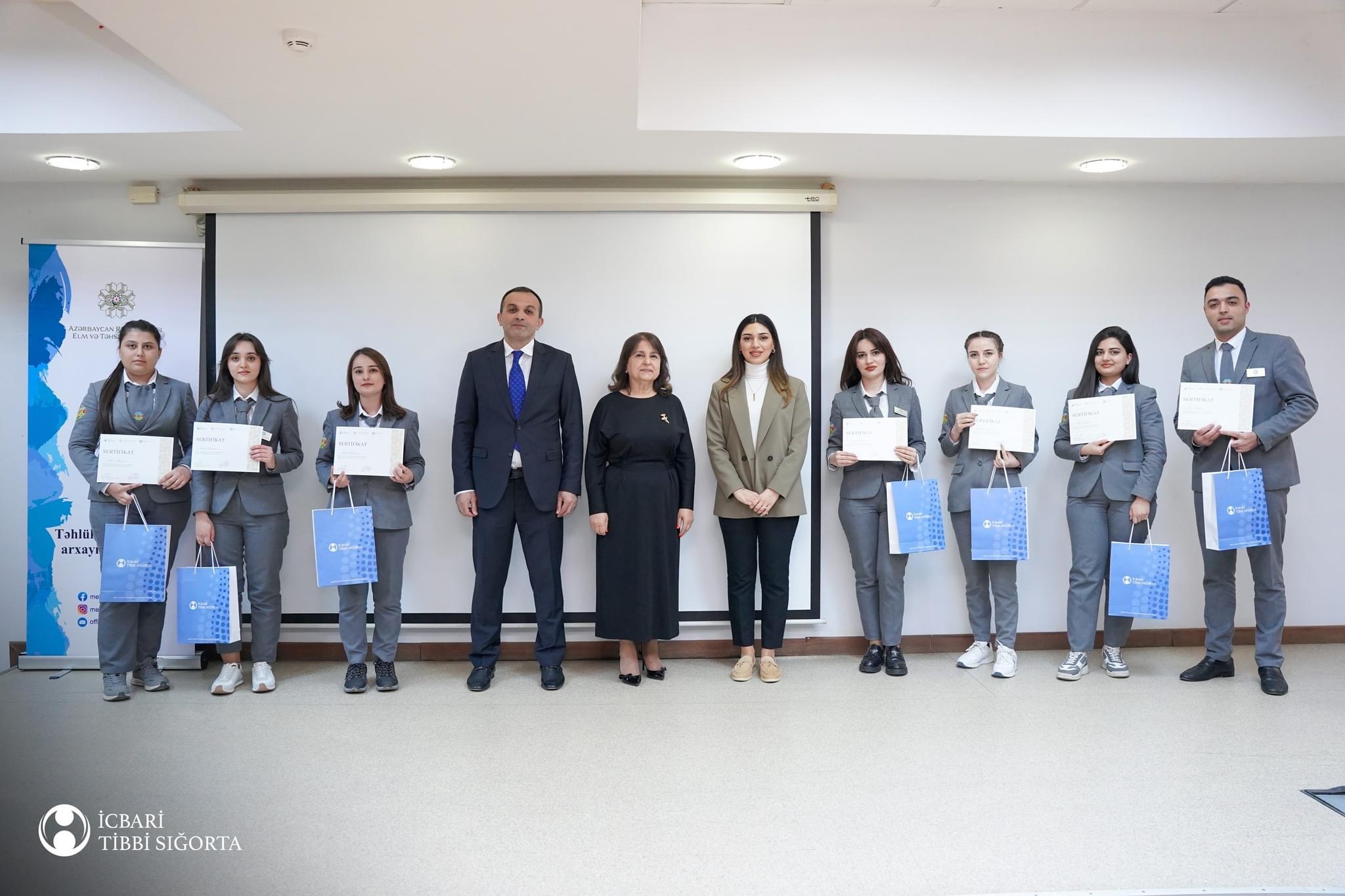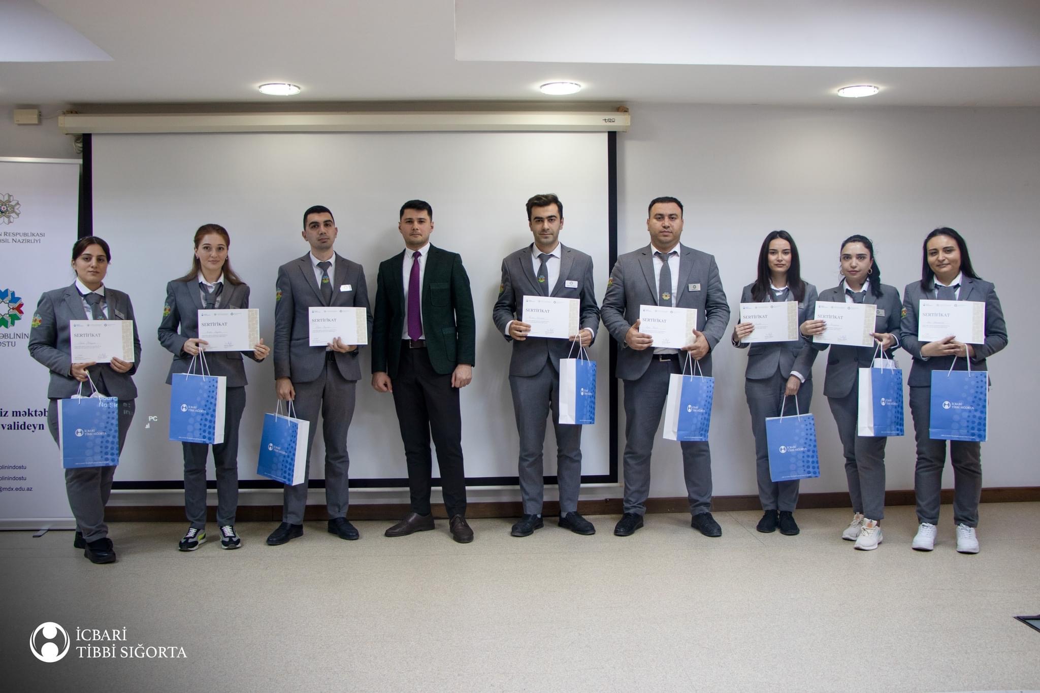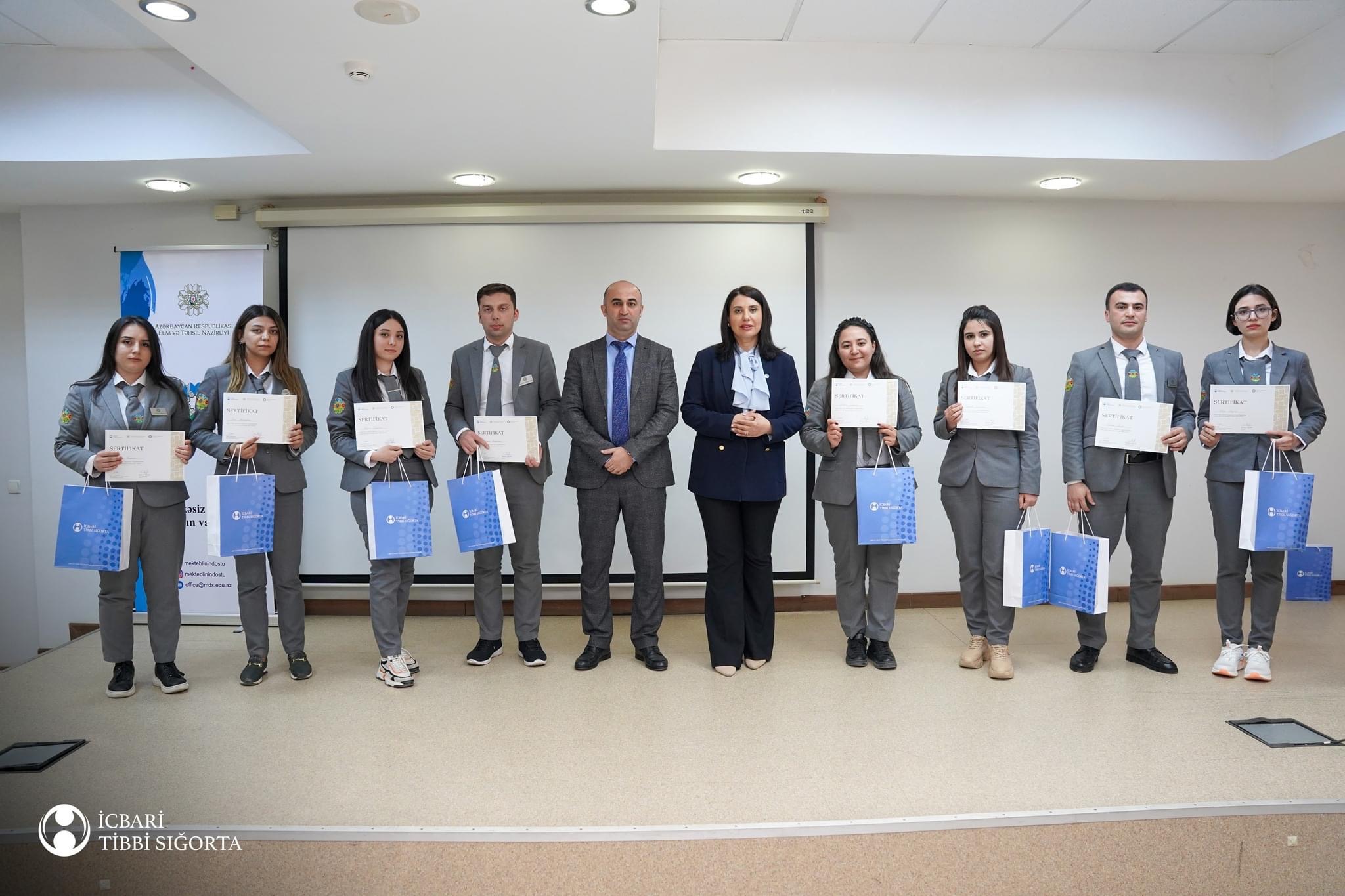 Yekununda iştirakçılara sertifikatlar təqdim olunub. Növbəti mərhələdə sertifikat əldə edən məktəblinin dostlarının iştirakı ilə təhsil müəssisələrində icbari tibbi sığorta mövzusunda maarifləndirmə işlərinin aparılması nəzərdə tutulub.