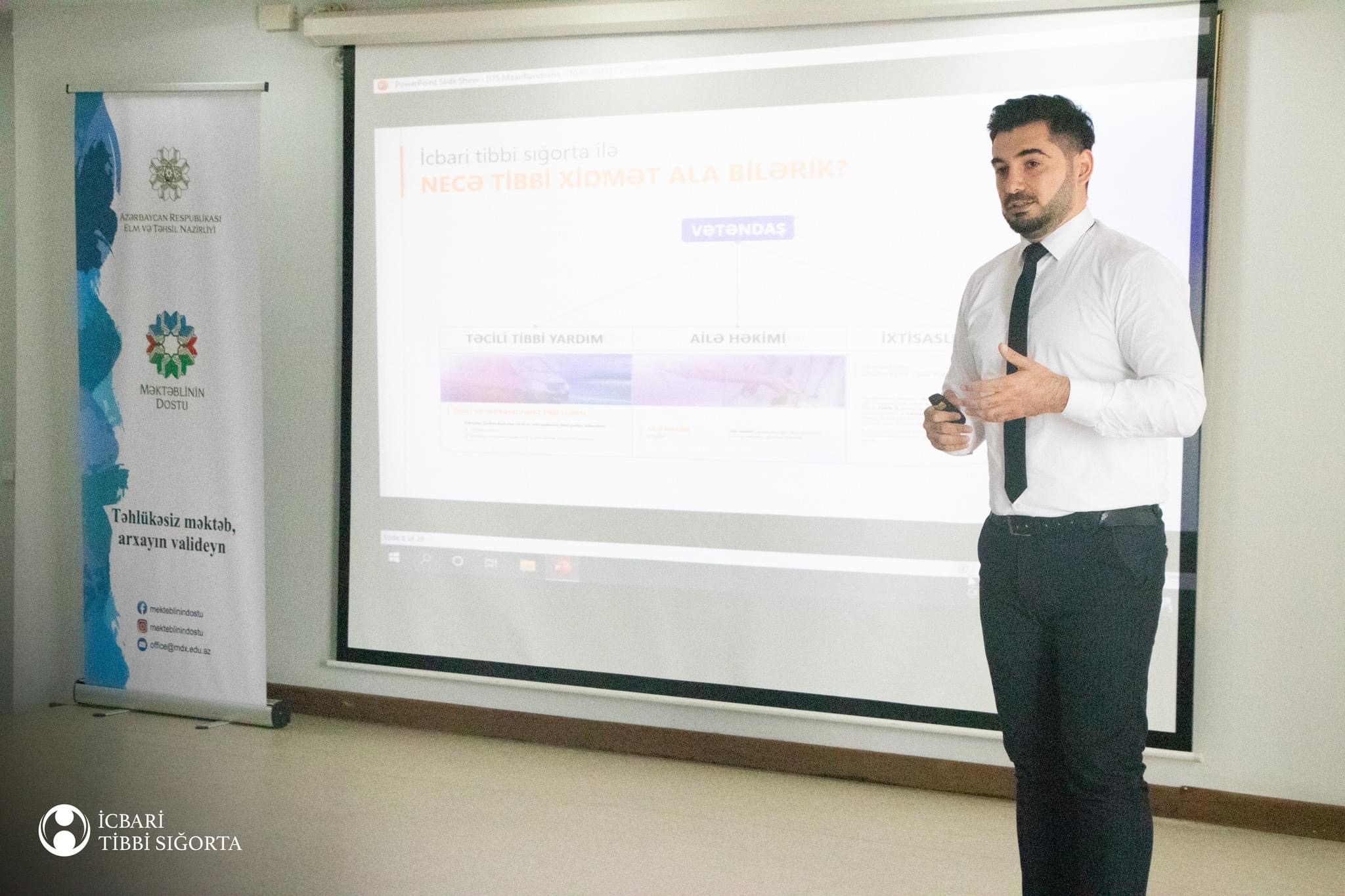 İcbari Tibbi Sığorta üzrə Dövlət Agentliyi Azərbaycan Respublikası Elm və Təhsil Nazirliyi ilə birlikdə Məktəblinin Dostu layihəsinin iştirakçıları üçün "İcbari tibbi sığortadan istifadə qaydaları" mövzusunda təlimlər təşkil edib.