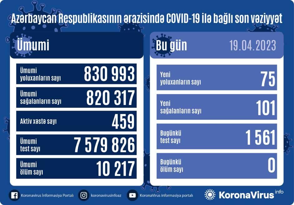 Azərbaycanda son sutka ərzində koronavirsa 75 yeni yoluxma faktı qeydə alınıb.