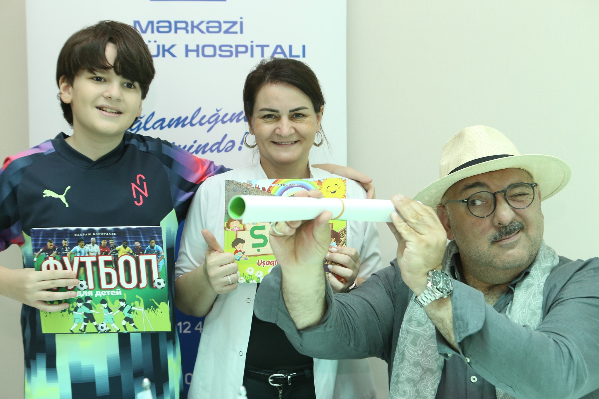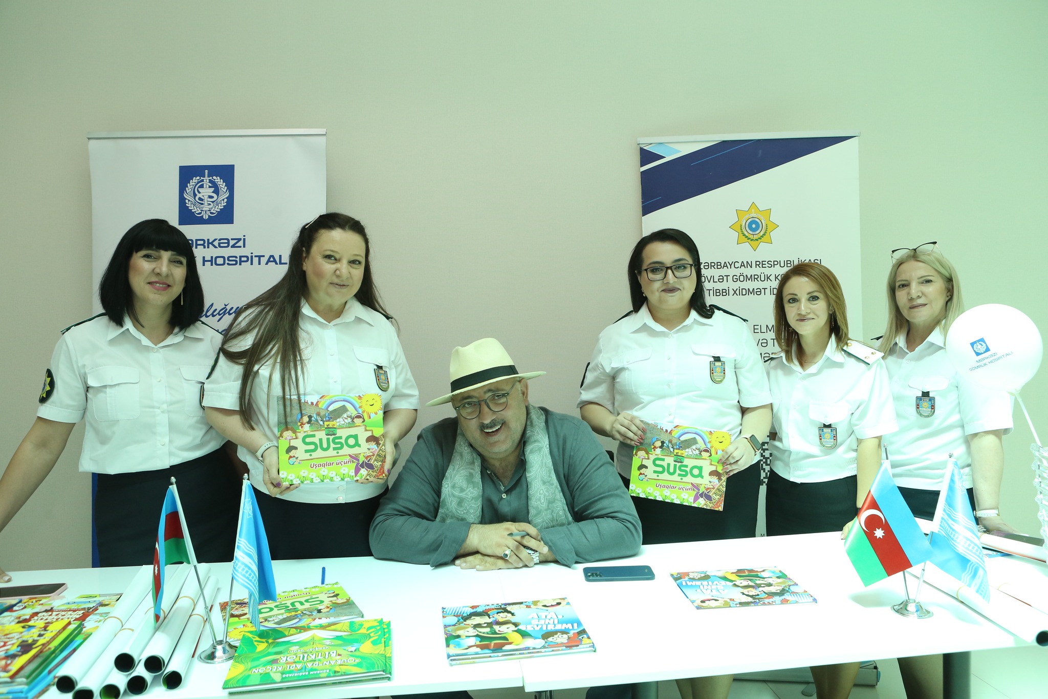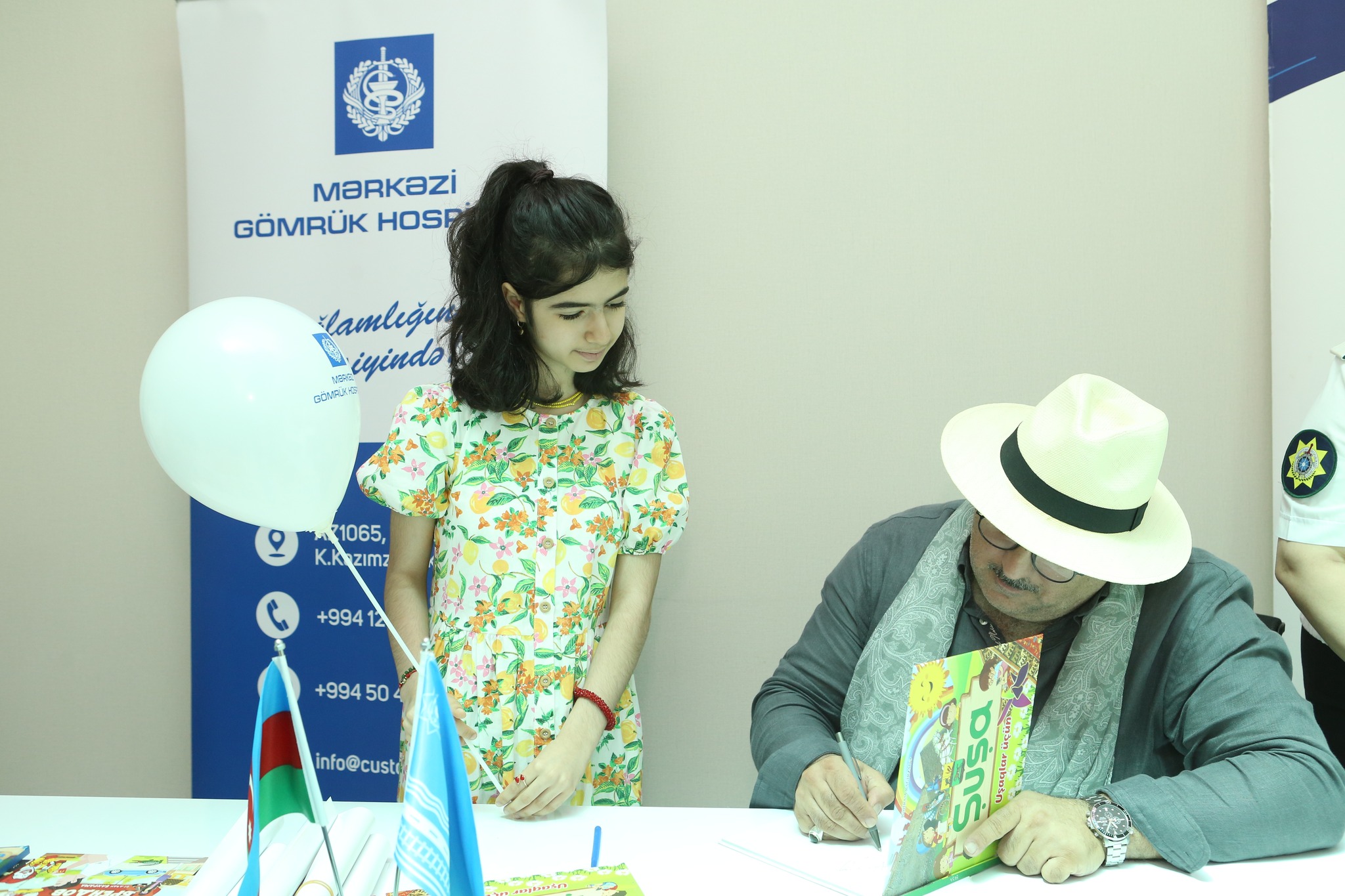 Mərkəzi Gömrük Hospitalının foyesində davam edən görüşdə Bəhram Bağırzadə uşaqlar üçün yazdığı kitablarını imzalayaraq, onlara hədiyyə edib.