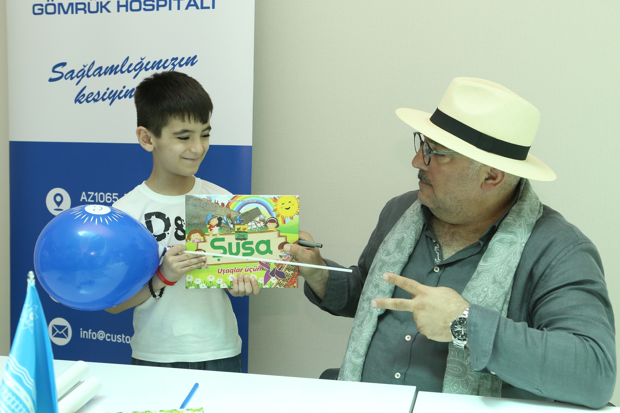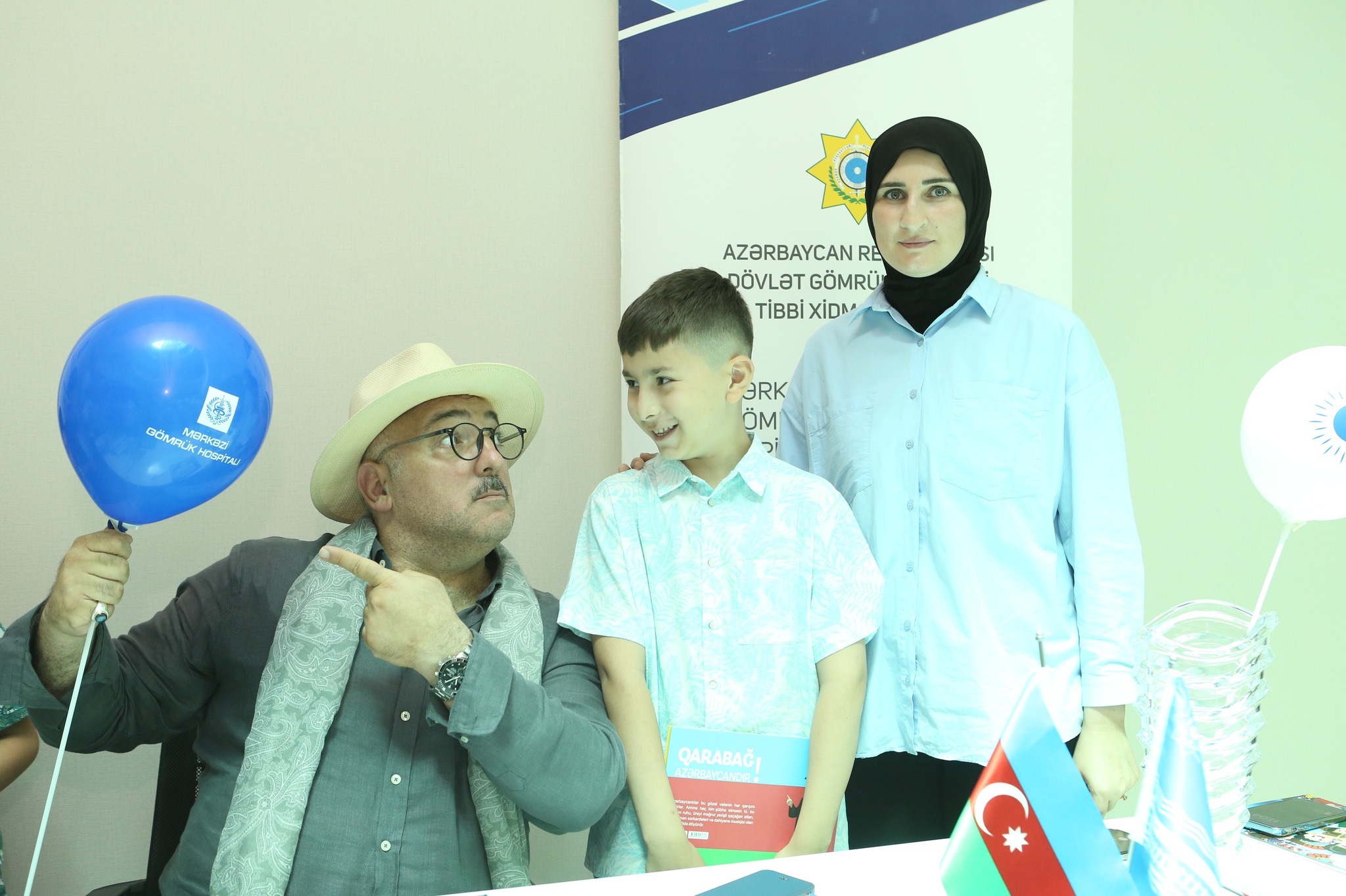 Əməkdar artist Bəhram Bağırzadə Mərkəzi Gömrük Hospitalında 17 iyun - Tibb İşçilərinin Peşə Bayramı Günü ərəfəsində səhiyyə işçilərinin uşaqlarına imza tədbiri keçirib.