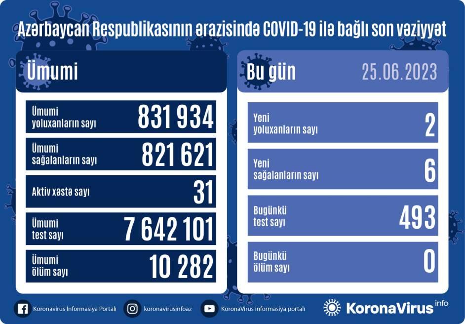 Son sutkada Azərbaycanda koronavirusa 2 yeni yoluxma faktı qeydə alınıb, xəstəlikdən ölən olmayıb.