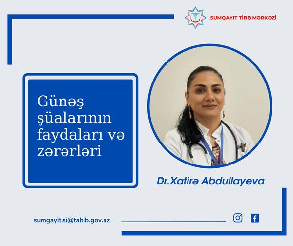 X.Abdullayeva günəş şüalarının faydaları ilə yanaşı, ziyanı olduğunu da xatırladıb: “Belə ki, dəri səthində piqment ləkələri, dəri xərçəngi, saçların quruması və tökülməsi, istivurma, günvurma, hipertermiyanın əmələ gəlməsi, yanlış zamanda günəş vannalarının qəbulu ilə bağlıdır".