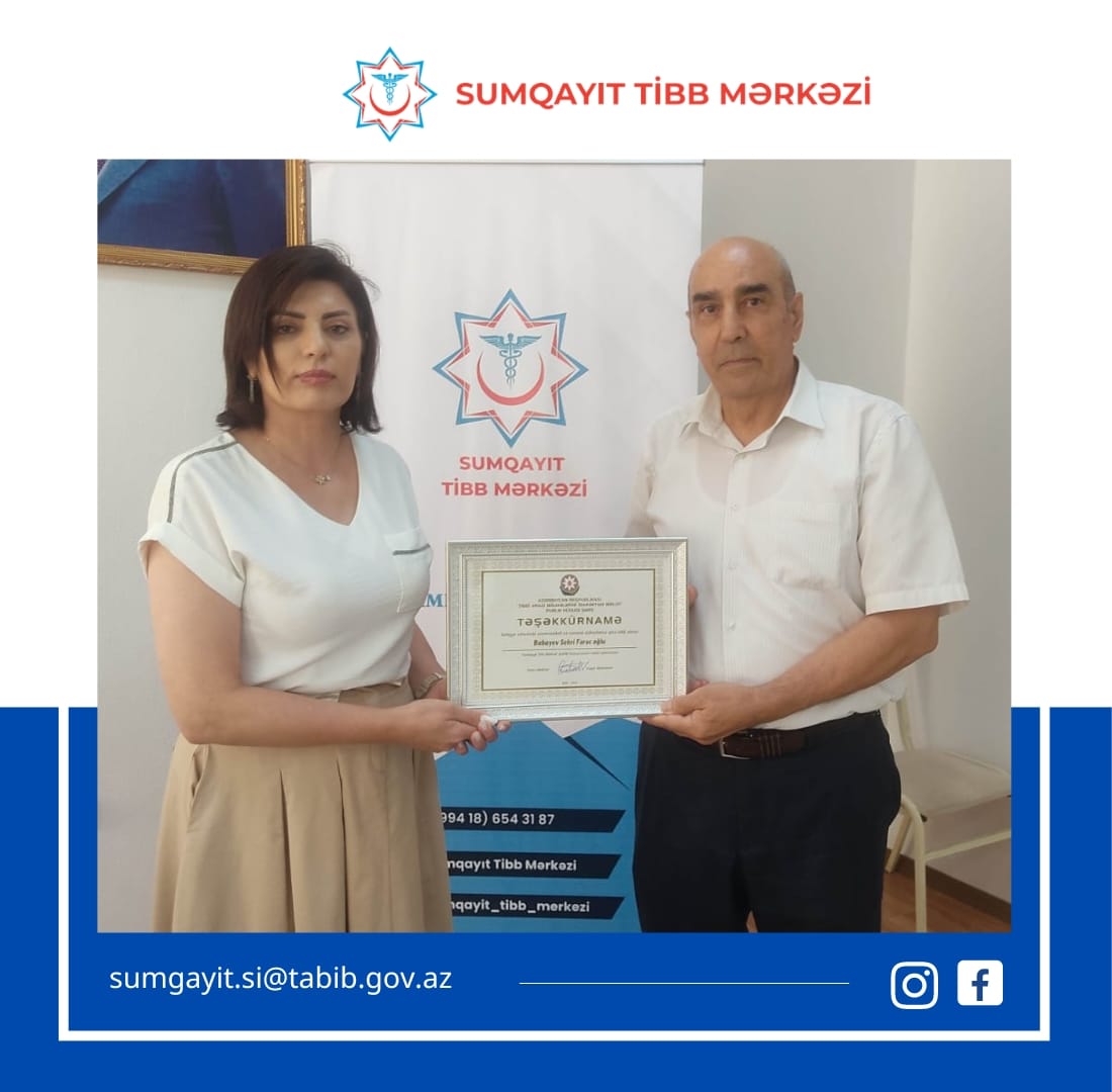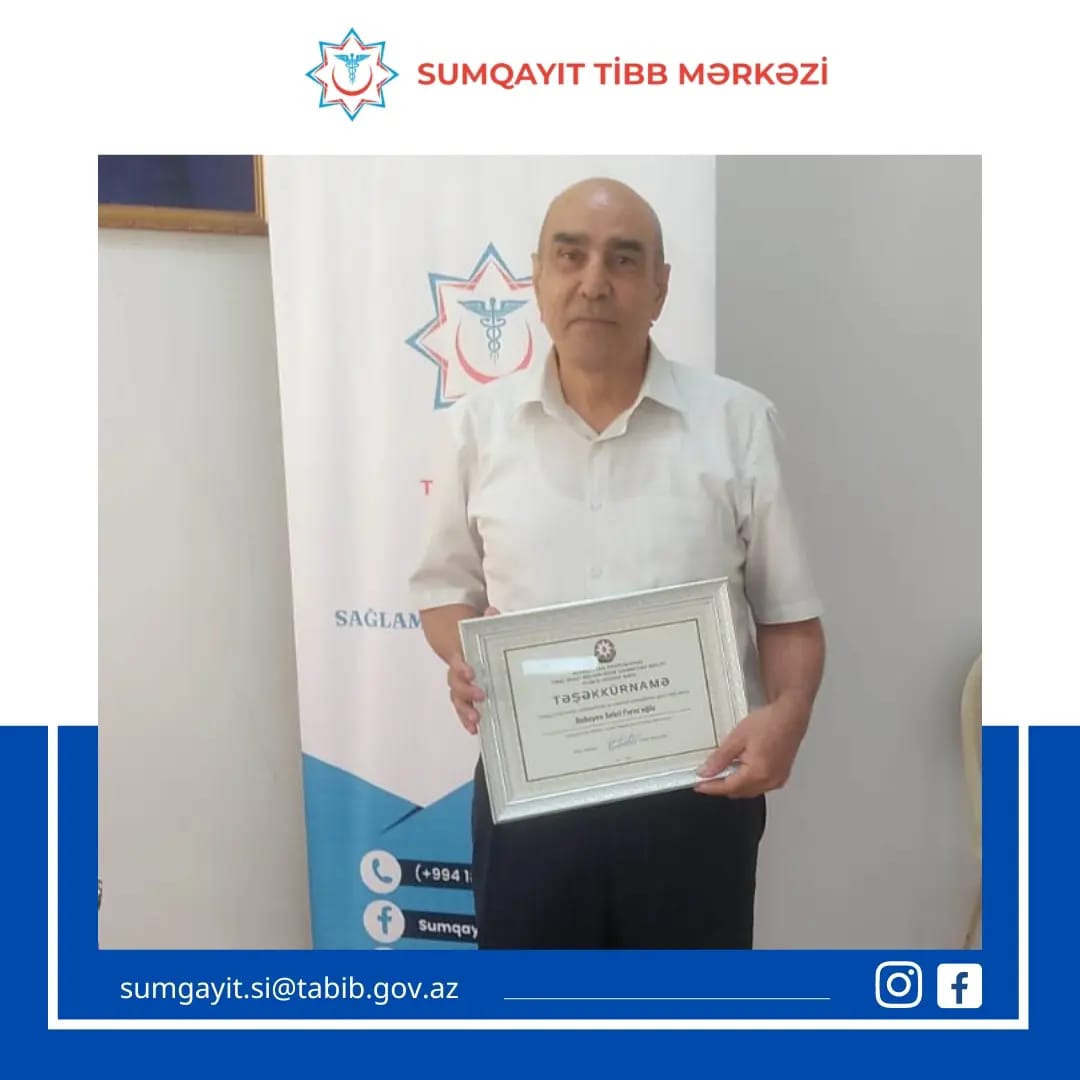 Qeyd edək ki, Əməkdar həkim S.Babayev 40 ilə yaxındır ki, Sumqayıt səhiyyəsinin uğurları üçün çalışır və Sumqayıt Tibb Mərkəzinin baş infeksionistidir.