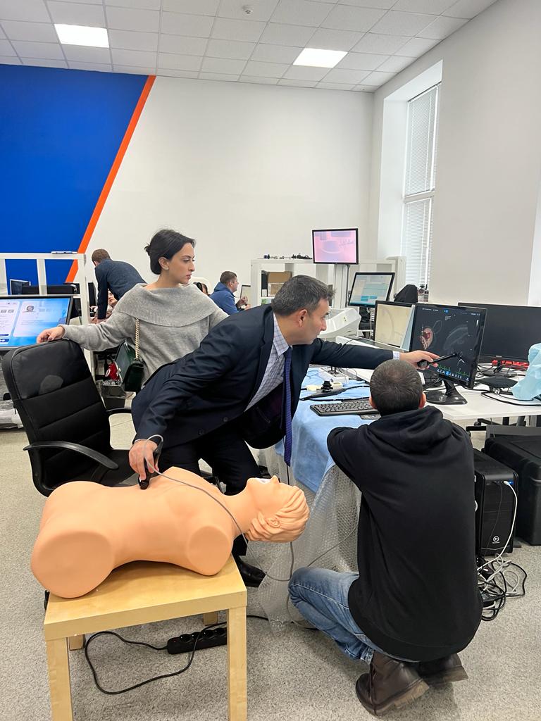 Nümayəndə heyəti Mərkəzdə həkimlər üçün diplomdan sonrakı davamlı tibbi təhsil tədbirlərinin keçirilməsi məqsədilə 6 müxtəlif istiqamətlərdə canlı və 2 virtual treyninq laboratoriyalarının fəaliyyəti ilə tanış olub. “EIDOS”un istehsal etdiyi təlim avadanlıqlarının istifadəsinə dair məruzələr dinlənilib.