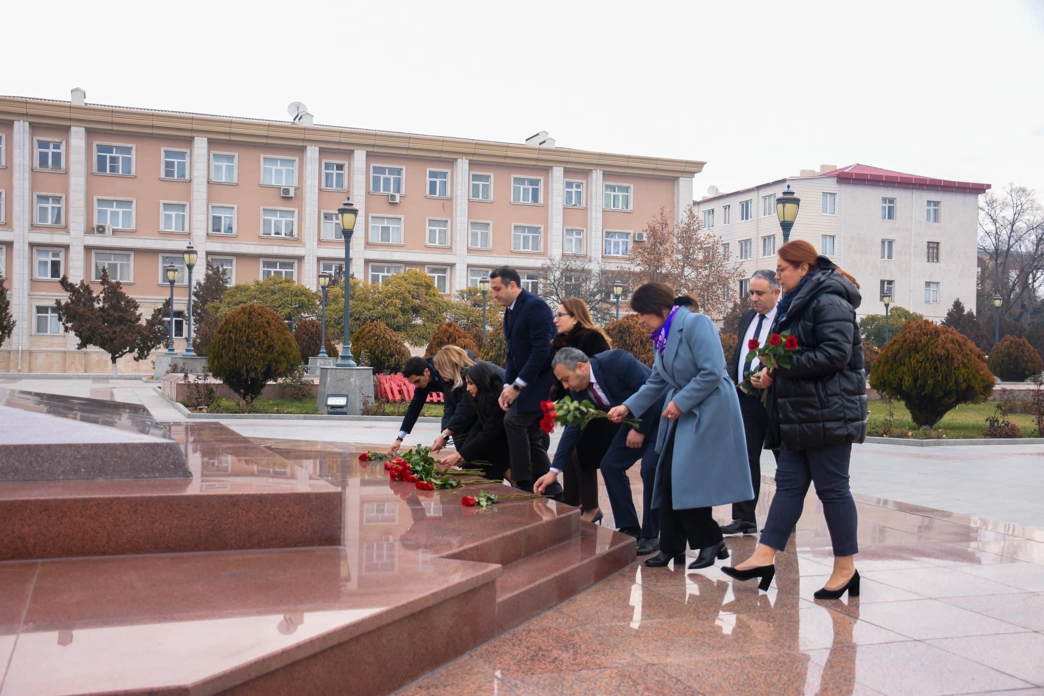 Öncə Ulu Öndər Heydər Əliyevin büstü üzərinə gül dəstələri qoyulub, Heydər Əliyev irsini əks etdirən muzey ziyarət olunub.
