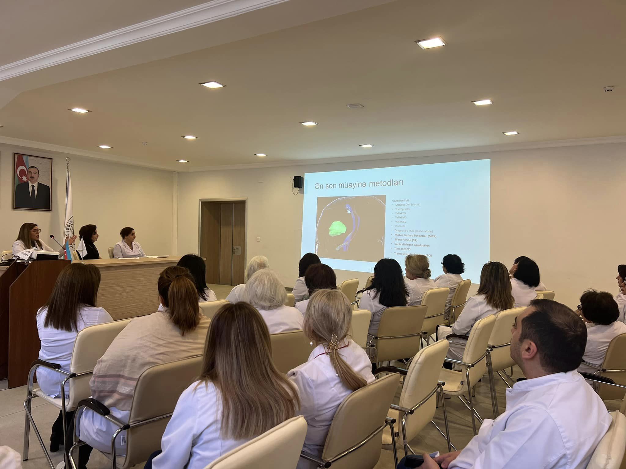 M.Məmmədova seminarda pranskranial maqnit stimulyasiyasının müayinə metodu, tətbiqi və interpritasiyası haqqında geniş məlumat verib. Həmin metodikanın Klinik Neyrofiziologiya laboratoriyasında uzun illərdi tətbiqindən, beynəlxalq protokollardan və bu metodikanın geniş diaqnostik imkanlarından danışıb.