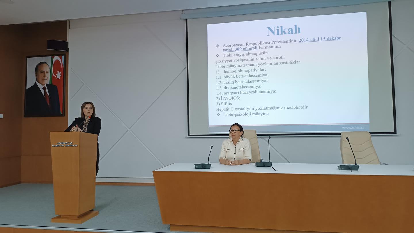 Səhiyyə Nazirliyinin İctimai Səhiyyə və İslahatlar Mərkəzi (İSİM) və Ailə, Qadın və Uşaq Problemləri üzrə Dövlət Komitəsinin birgə əməkdaşlığı ilə 20 may 2024-cü ildə Azərbaycan İlahiyyat İnstitutunda “Erkən nikah və qohum nikahların fəsadları” mövzusunda maarifləndirici tədbir keçirilib.