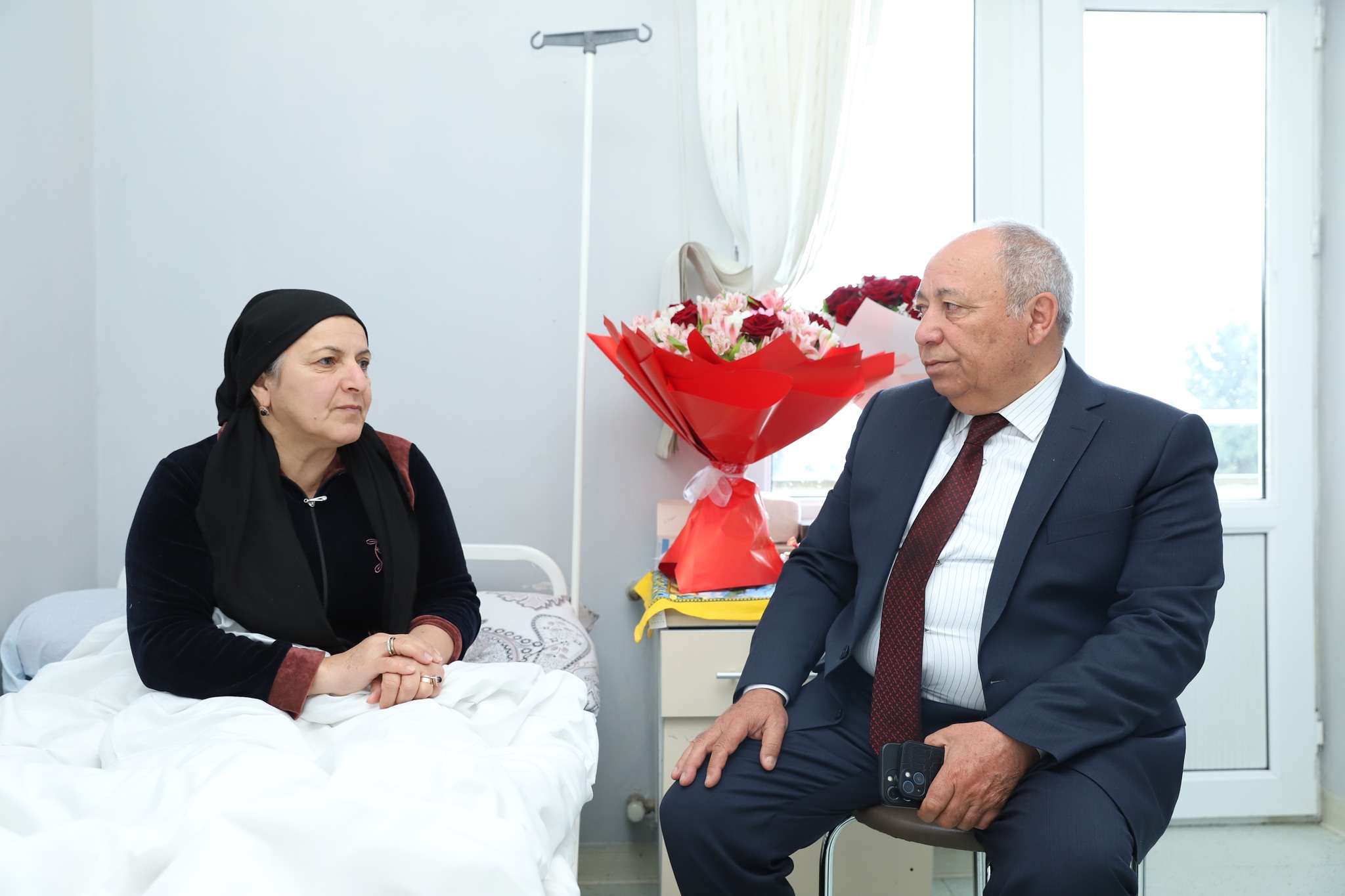 Xaçmaz RMX-nın direktoru xəstəxanada müalicə alan şəhid anası və Vətən müharibəsi qazisinin səhhəti ilə maraqlanıb