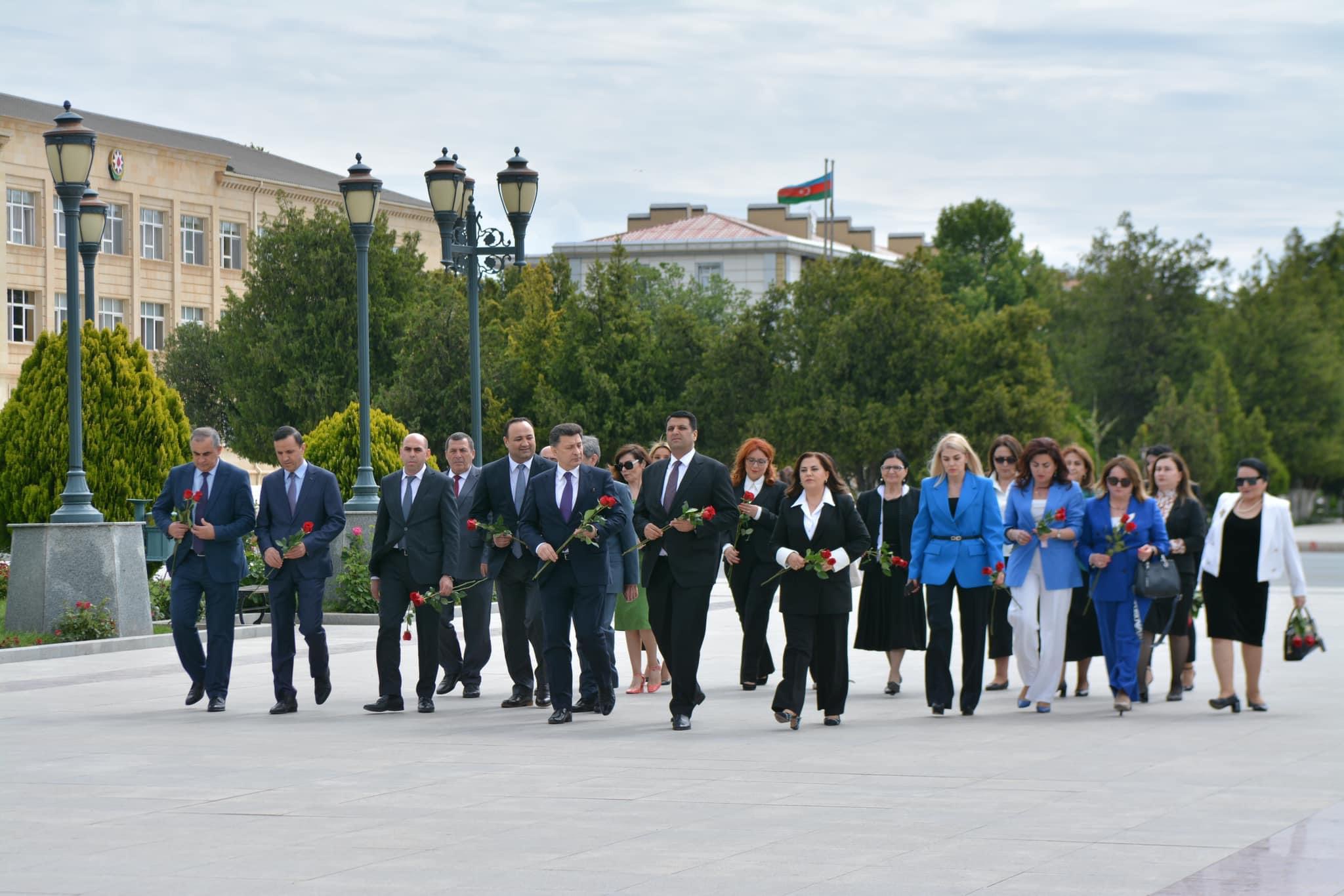 Respublika konfransının iştirakçıları Ümummilli Lider Heydər Əliyevin abidəsini ziyarət ediblər