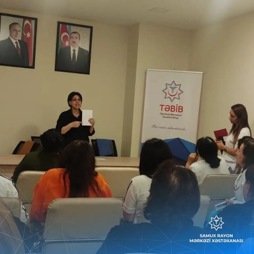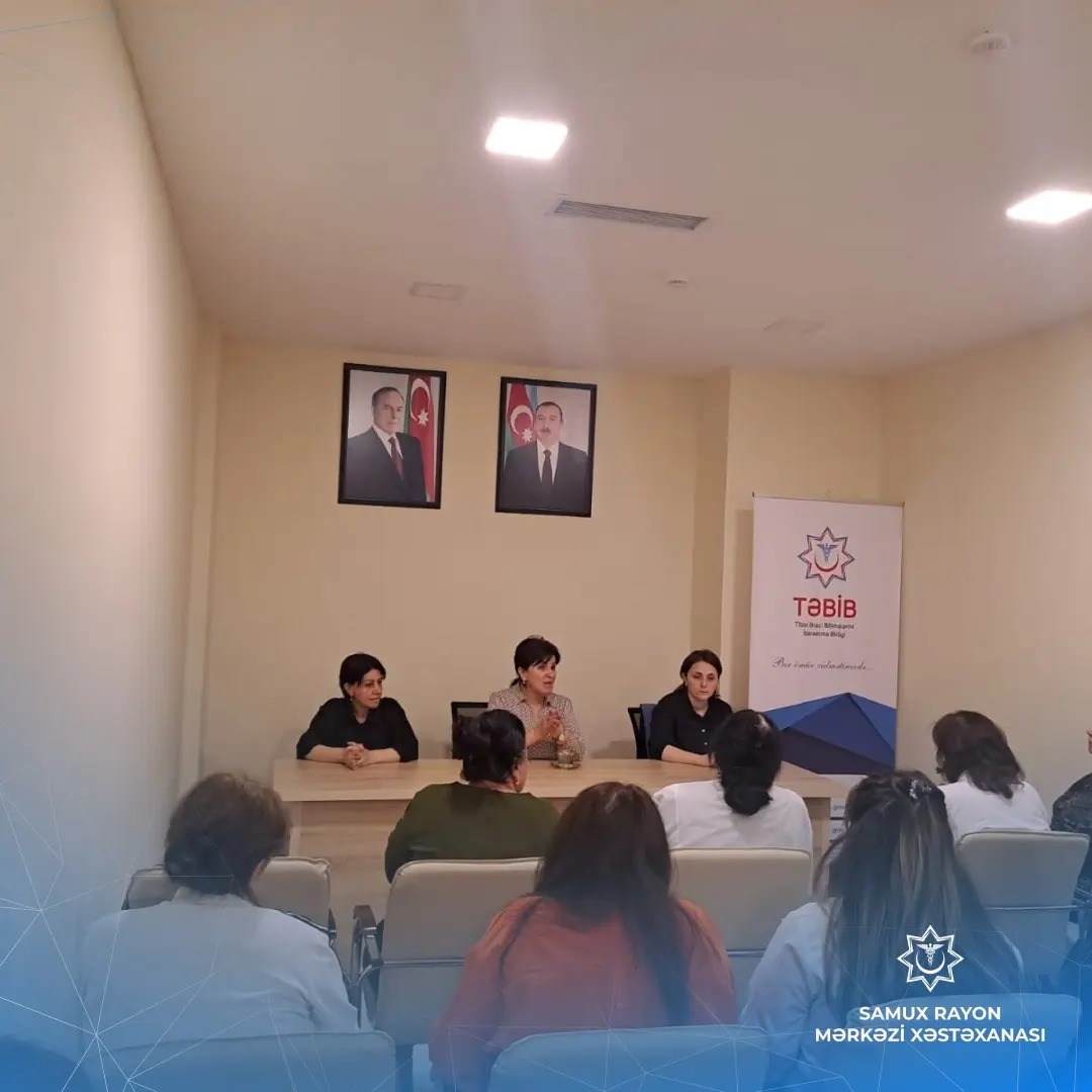 Samux Rayon Mərkəzi Xəstəxanasında ”Hamilə, zahı qadınlara və azyaşlı uşaqlara göstərilən yeni patronaj modelinin tətbiqi" ilə bağlı təlim keçirilib.