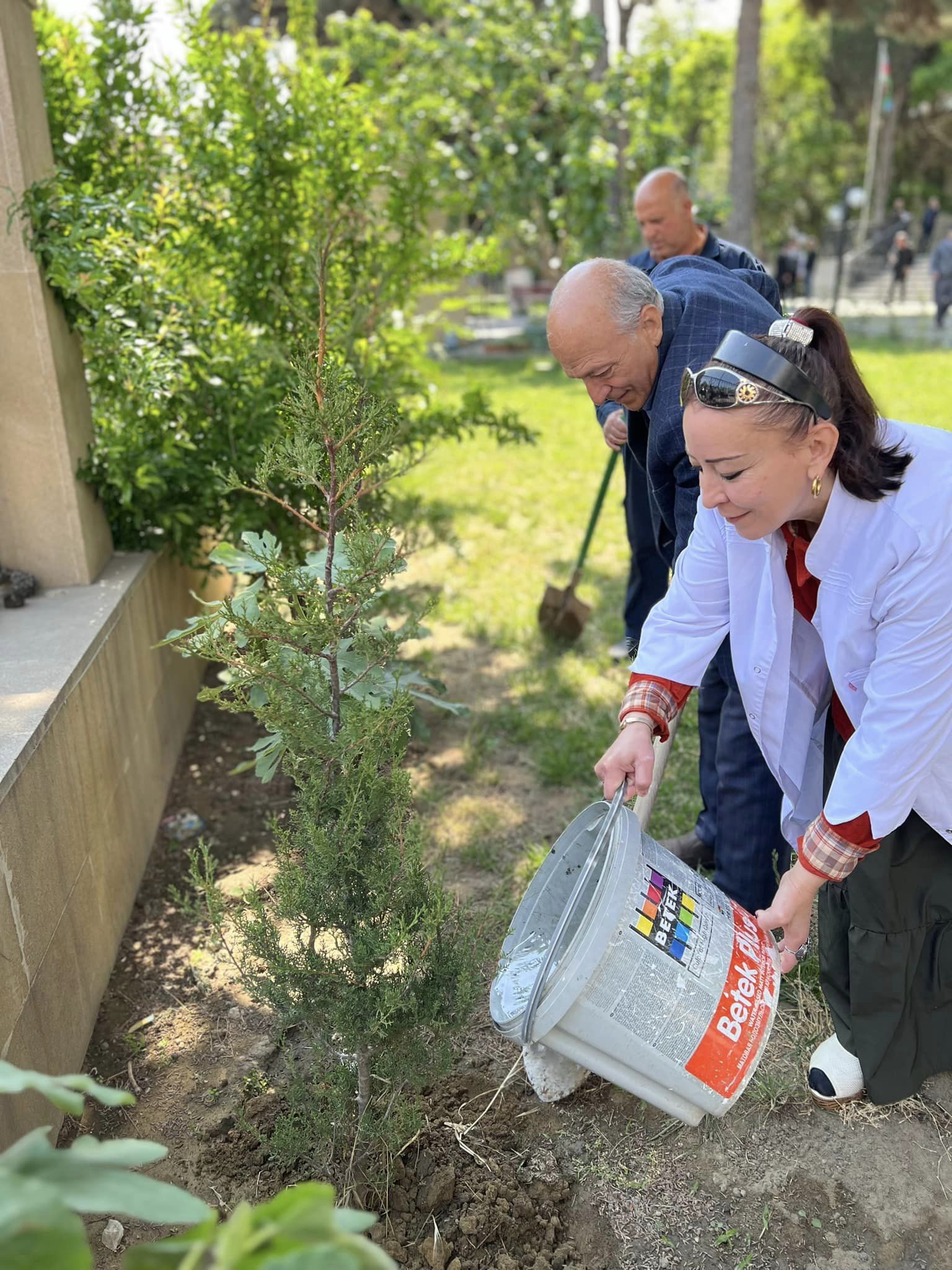 Elmi-Tədqiqat Tibbi Bərpa İnstitutunun həyətyanı sahəsində müxtəlif növ ağaclar əkilib