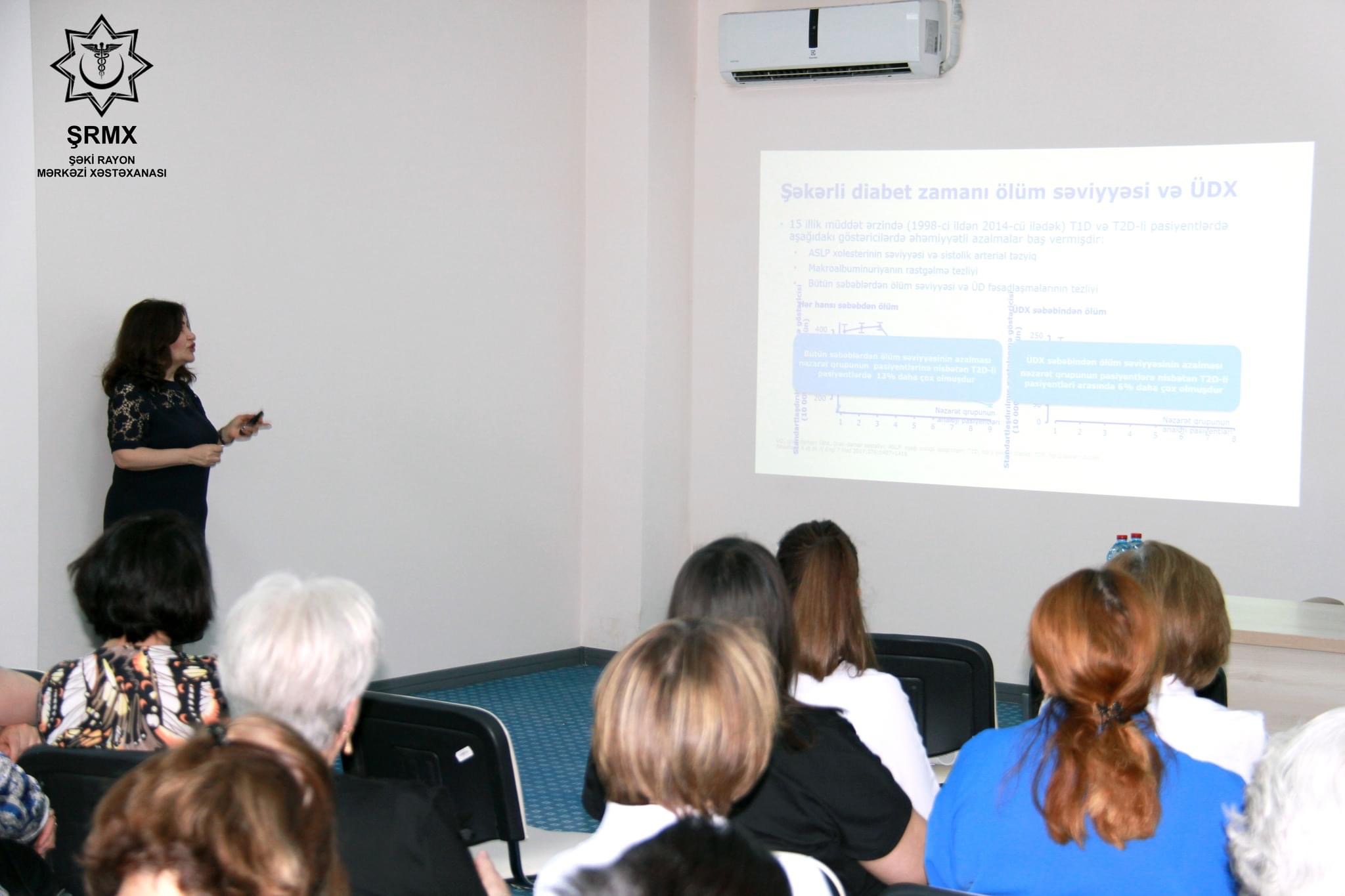 Şəki RMX-dan Aztibb.az-a bildirilib ki, Respublika Endokrinoloji Mərkəzin direktoru Nərminə İsmayılova və həkim-endokrinoloq Səriyyə Ağayeva “Şəkərli diabetin müasir müalicə üsulları, diaqnostikası”, “Piylənmə ilə mübarizə və uşaqlarda piylənmənin qarşısının alınması” mövzusunda məruzələrlə çıxış ediblər.