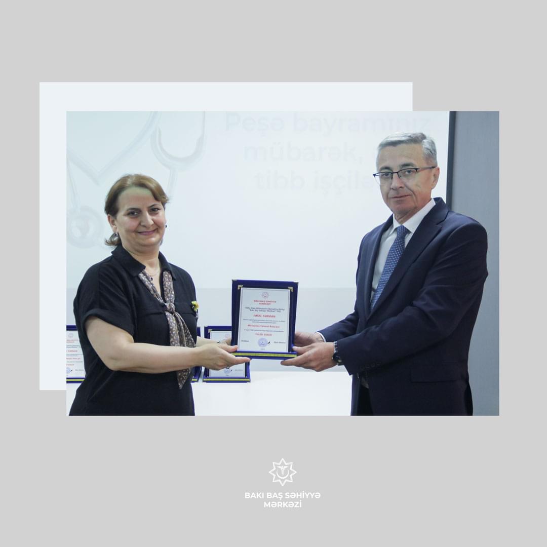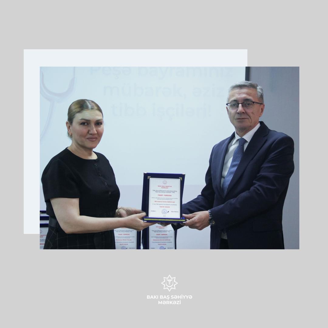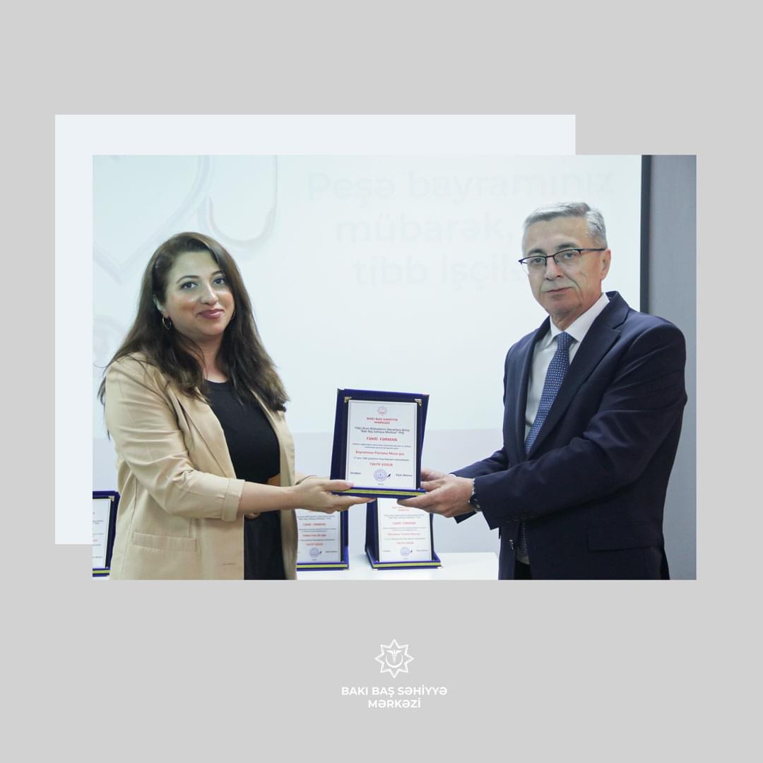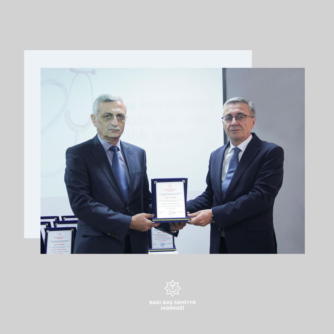 Tədbirin sonunda Bakı Baş Səhiyyə Mərkəzinin strukturuna daxil olan tibb müəssisələrinin bir sıra əməkdaşları əhalinin sağlamlığının qorunması sahəsində qüsursuz və səhiyyə sistemində səmərəli fəaliyyətinə görə fəxri fərmanlarla təltif edilib.