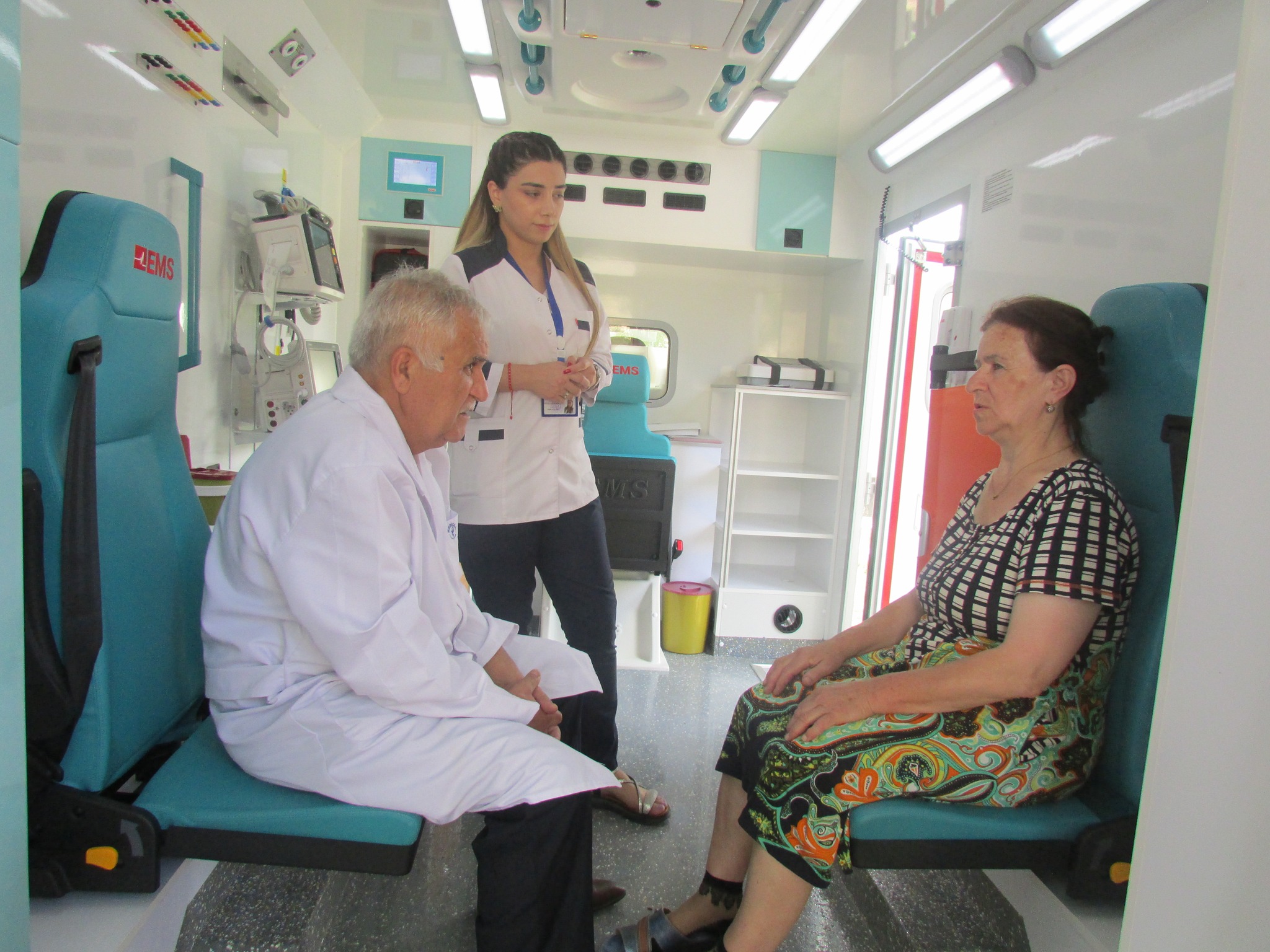 Pasiyentin vəziyyətinə nəzarət və reanimasiya tədbirləri üçün avtomobillər kardiomonitor, defibrilyator, elektrokardioqraf (EKQ), mobil süni tənəffüs cihazı, perfuziya və infuziya cihazları ilə təchiz olunub. Diaqnostik müayinə və ilkin qiymətləndirmə üçün stetoskop, otoskop, oftalmoskop, spirometr ilə təmin olunub. Əlavə olaraq, görüntüləmə və dərin müayinə üçün mobil ultrasəs müayinəsi (USM), mobil exokardioqraf (EXO) və rəqəmsal DR sistemli mobil rentgen aparatı da mövcuddur.