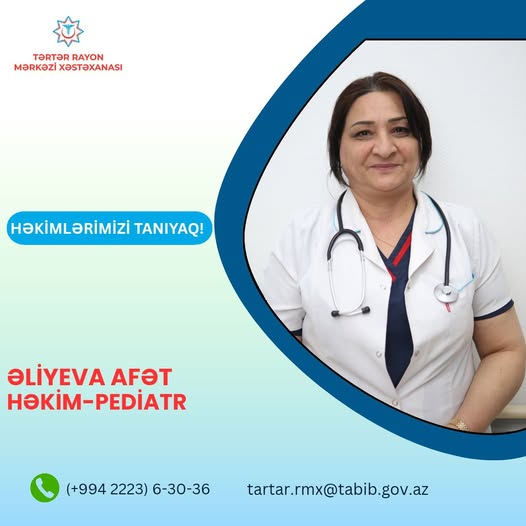 Aztibb.az-ın "Həkimlərimizi tanıyaq!" rubrikasında bu dəfə Tərtər Rayon Mərkəzi Xəstəxanasının pediatrı Əliyeva Afət Bəylər qızından bəhs edəcəyik.