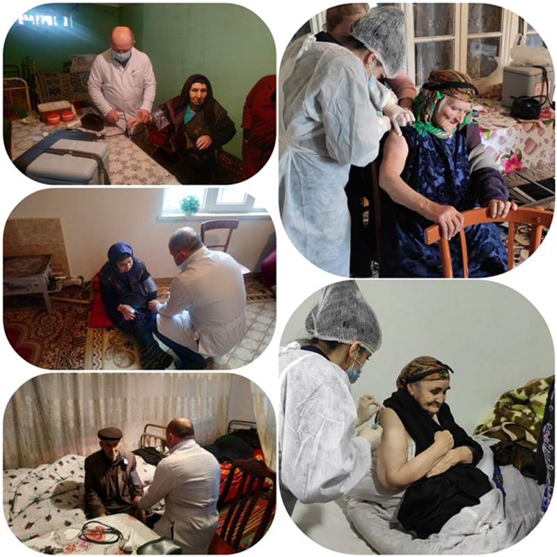 "2021-2022-ci illər üçün Vaksinasiya Strategiyası”na uyğun olaraq fevralın 8-dən 65 yaşdan yuxarı vətəndaşlar üçün həyata keçirilən vaksinasiya prosesi çərçivəsində respublikanın bölgələrində “Tibbi Ərazi Bölmələri İdarəetmə Birliyi” publik hüquqi şəxsin (TƏBİB) tabeliyində olan xəstəxanaların həkim kollektivi tərəfindən fiziki məhdudiyyətləri olan şəxslərin evlərində peyvənd edilməsi işi həyata keçirilir.