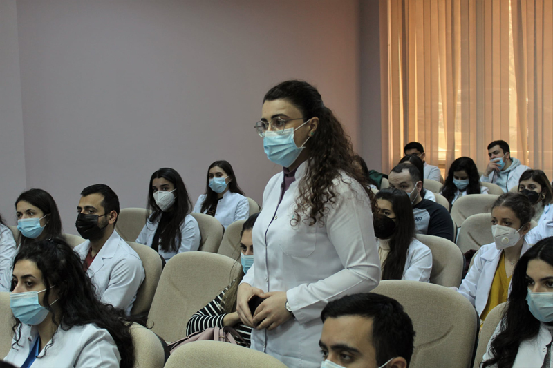 Tədris Terapevtik Klinikasının direktoru, professor Surxay Musayev, ATU-nun Rezidentura şöbəsinin müdiri, professor Nailə Sultanova, direktorun müavini Samir Allahverdiyev və direktorun müalicə işləri üzrə müavini Fəridə Hacıyeva tərəfindən həkim-rezidentlərin sualları cavablandırılıb.